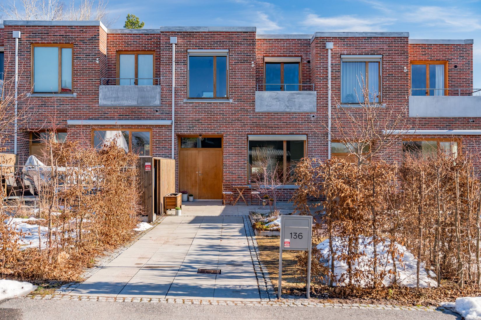 Huset ingår i Brf Häradshusen – ett arkitektoniskt signerat kvarter bestående av 23 radhus uppförda i varmt tegel från Haga Tegelbruk och färdigställda 2019. Här möts klassiska material och samtida formspråk i en harmonisk helhet där byggnaderna smälter naturligt in i den omgivande naturen.
