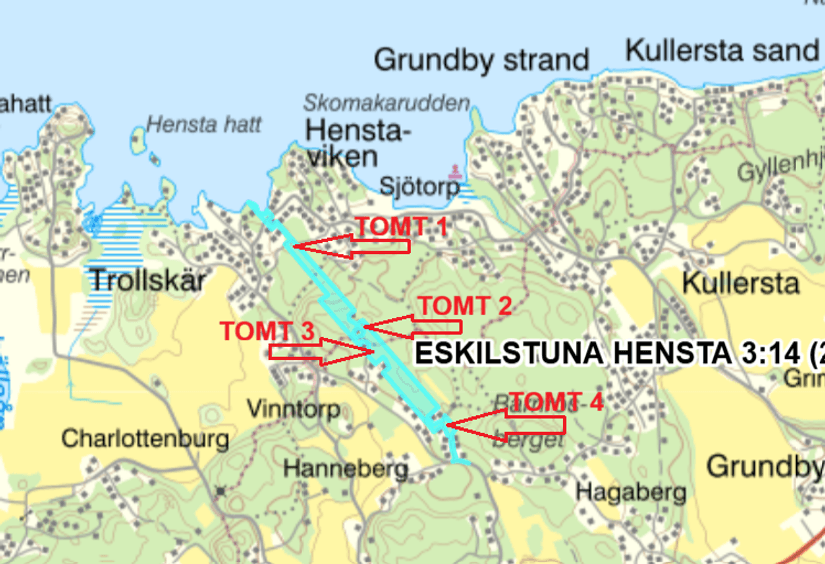 Drömmer du om att bygga nytt i naturskön miljö med närhet till Mälaren. Nu har du chansen att förverkliga dina husdrömmar. Vi erbjuder fyra attraktiva tomter, där du kan välja det läge, den storlek och det pris som passar dig bäst. Tomterna ligger utanför detaljplanerat område, vilket ger dig generösa möjligheter att själv välja hustyp och utformning. Positivt förhandsbesked finns, vilket skapar trygghet i din byggprocess. Här bor du mitt i naturen med promenadavstånd eller en kort cykeltur ner till någon av Mälarens många badplatser. Möjlighet att hyra båtplats finns. En perfekt plats för dig som vill kombinera lugn och livskvalitet med närhet till vatten och friluftsliv. Kommunalt VA och fiber finns vid tomtgräns, anslutningsavgifter tillkommer. Välkommen att skapa ditt drömboende i en miljö där naturen står i centrum. Tomtstorlek är mellan 800 kvm - 1.704 kvm och priset ligger mellan 795.000 kr - 1.095.000 kr.