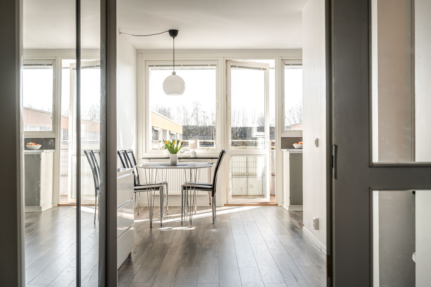 Välkomna till denna mycket välplanerade, ljusa och rymliga lägenhet med bl a ett fräscht och renoverat badrum och nya golv genomgående i hela bostaden. En stor möblerbar hall (plats för skrivbord/arbetsplats) med bra förvaringsmöjligheter och en ny stor skjutdörrsgarderob, ett bra rum med plats för både en stor säng och en liten soffgrupp samt ett uppfräschat originalkök med en stor bra matplats, nyare kylskåp och frysskåp, en spis och även en diskmaskin. Från köket utgång till en stor möblerbar balkong med ett fritt söderläge! Till lägenheten finns även ett stort bra varmförråd med eluttag. Förrådet ligger i direkt närhet till lägenheten.