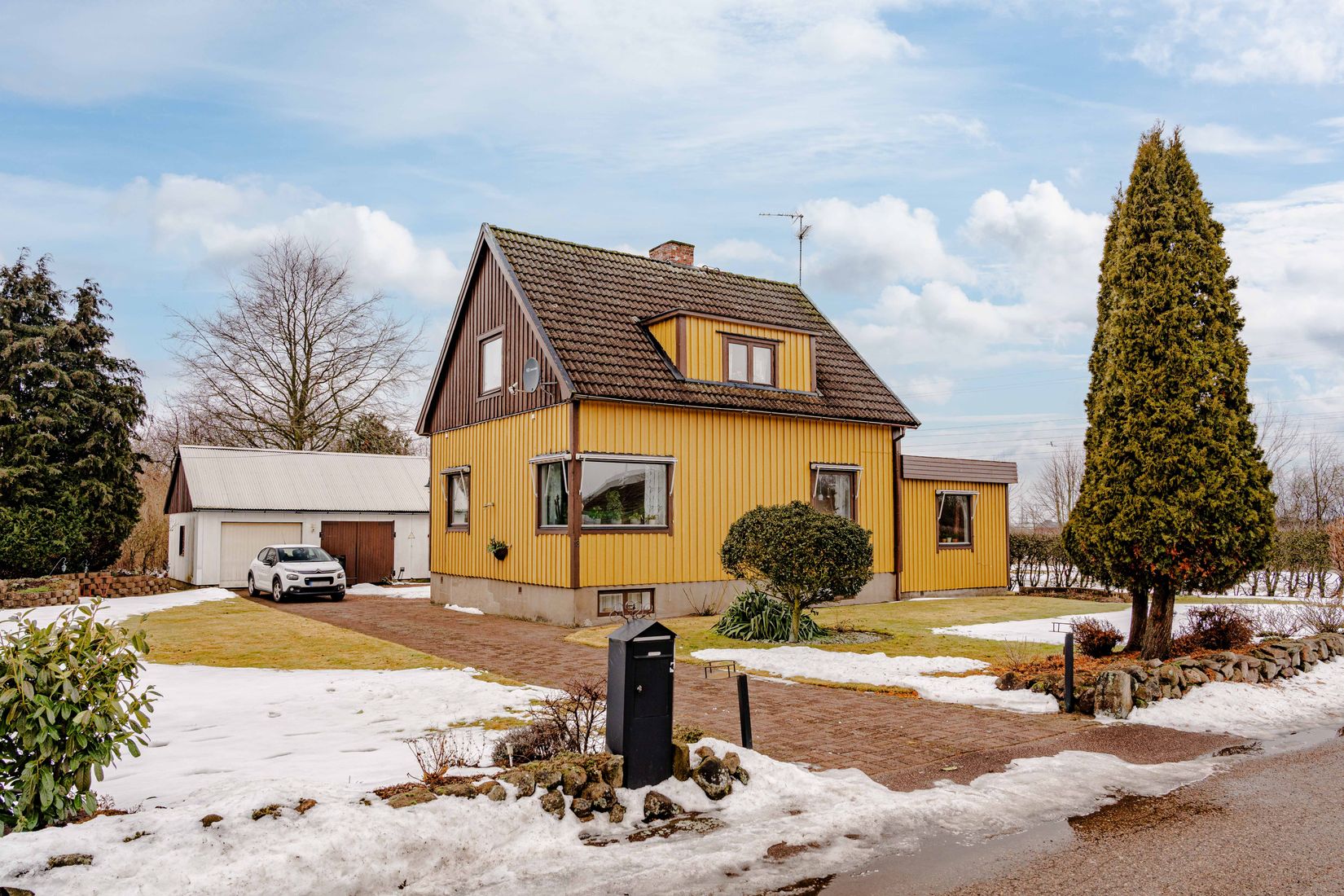 På tomten finns även ett rymligt dubbelgarage med smörjgrop, något som är ovanligt och mycket uppskattat för bilintresserade, hobbymeckare eller den som behöver extra plats för verkstad och förvaring.