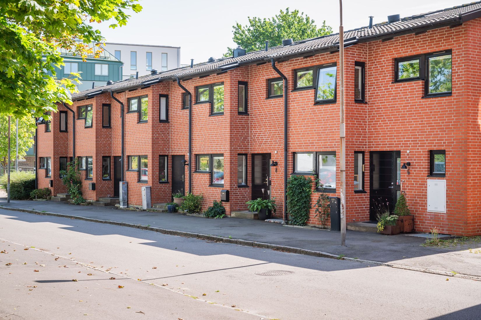 Utemiljön är något alldeles extra. Trädgården är skyddad och vänd mot ett attraktivt söderläge som ger sol under stora delar av dagen. Här finns fina möjligheter att skapa en grön och personlig oas – perfekt för frukost i morgonsolen, middagar utomhus eller egna odlingsprojekt. Huset är placerad på hörnan av längan och har därför också närmst till parkeringsplatserna som ligger på gaveln.
