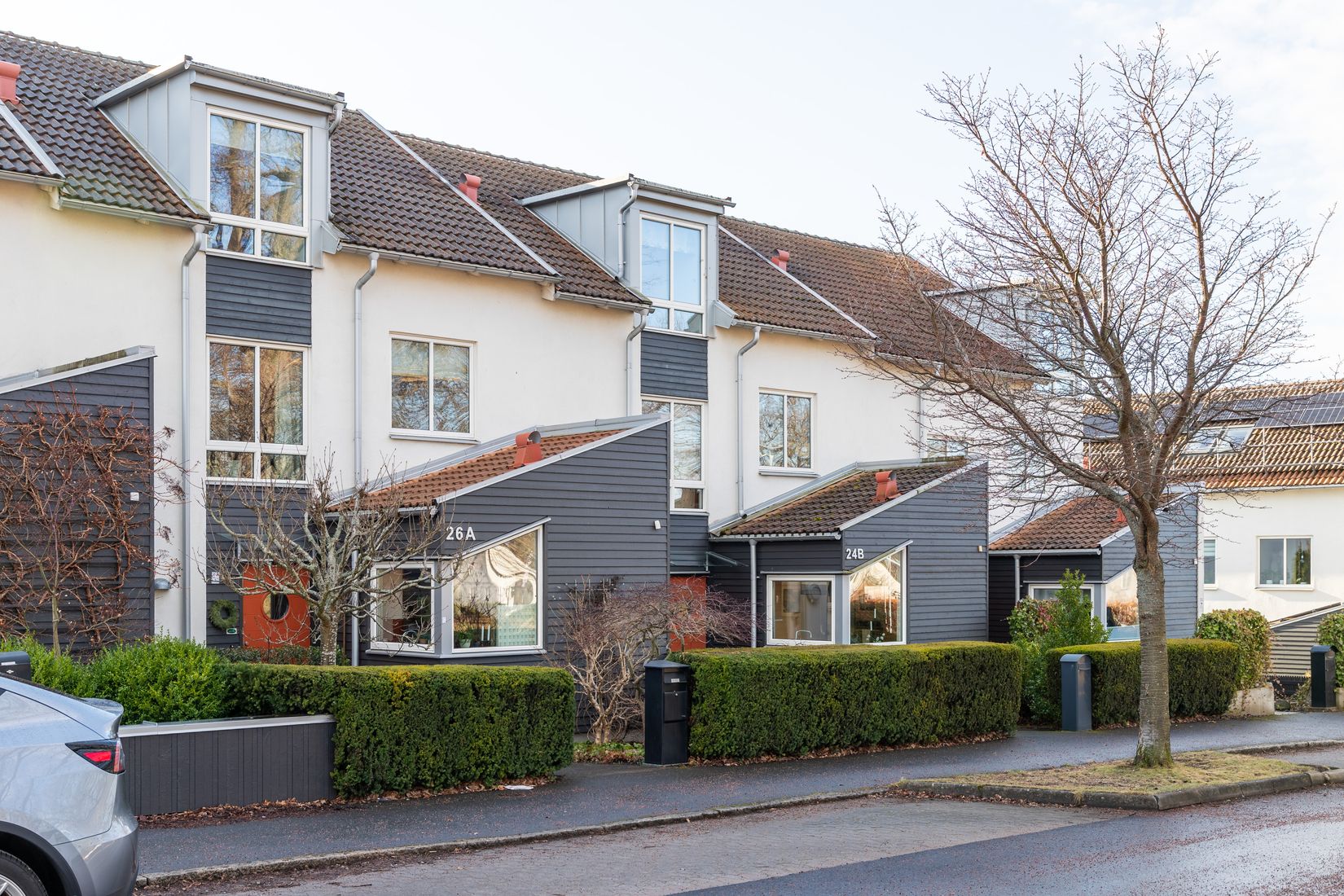 Denna arkitektritade bostad är en del av en välskött samfällighet och byggdes av NCC år 2005. Här möter spännande arkitektur funktion och mitt i bostadsområdet finns lekytor och grönområde som sköts om gemensamt.