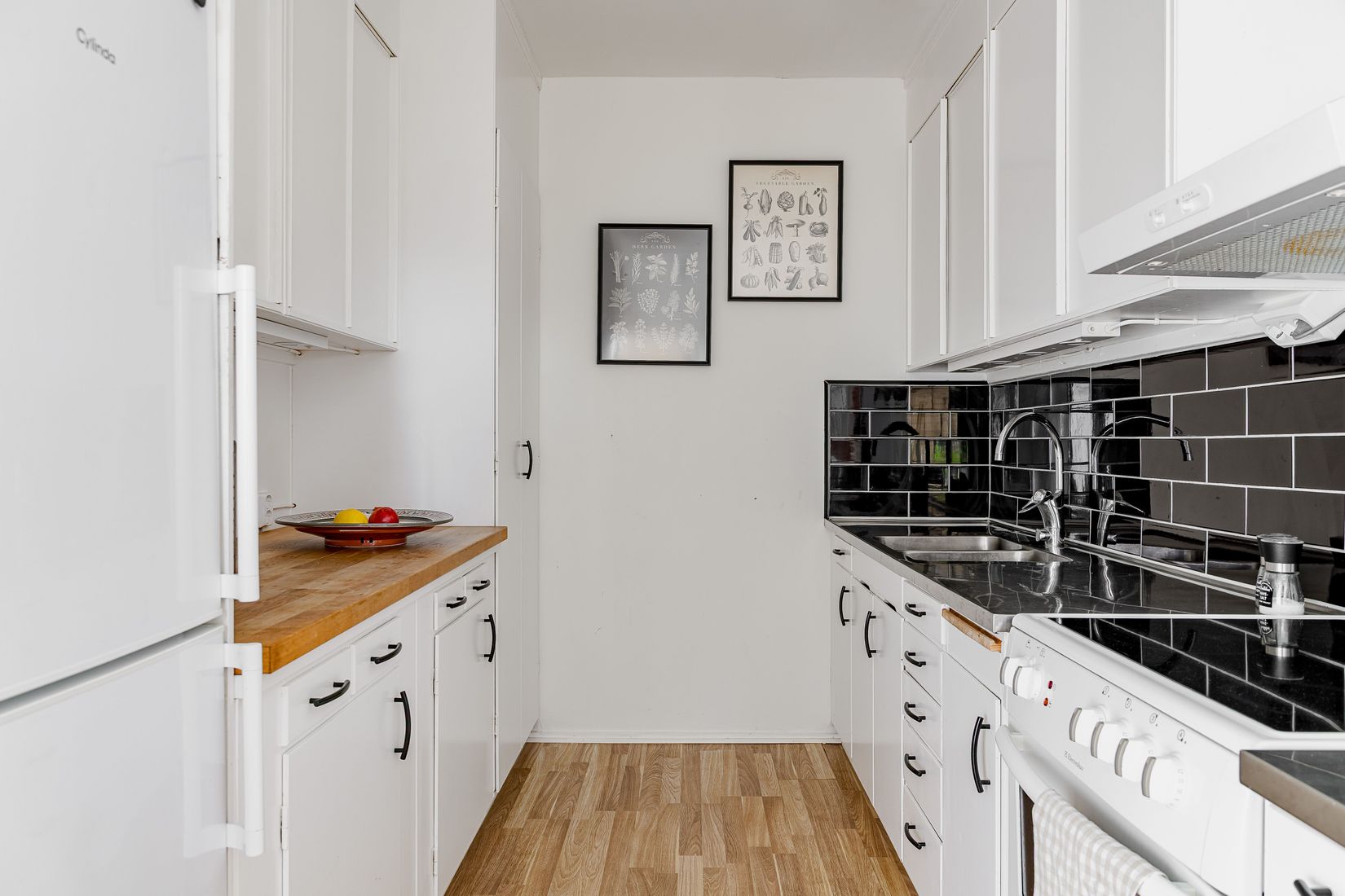 Stig in i hall med mycket goda förvaringsmöjligheter i platsbyggd garderob och klädkammare. Enhetligt golv löper genom hela bostaden. Generöst lättmöblerat allrum som inrymmer både sovdel och plats för soffhörna. Väl tilltaget kök med fin förvaring i köksskåp och lådor, extra plus för ljus matplats intill fönstret. Tidlöst helkaklat badrum med dusch och tvättmaskin, stambytt och renoverat av föreningen 2018. En stor bonus är den inglasade balkongen som vetter mot föreningens härliga grönyta, här tillförs lägenheten en fin extra yta!