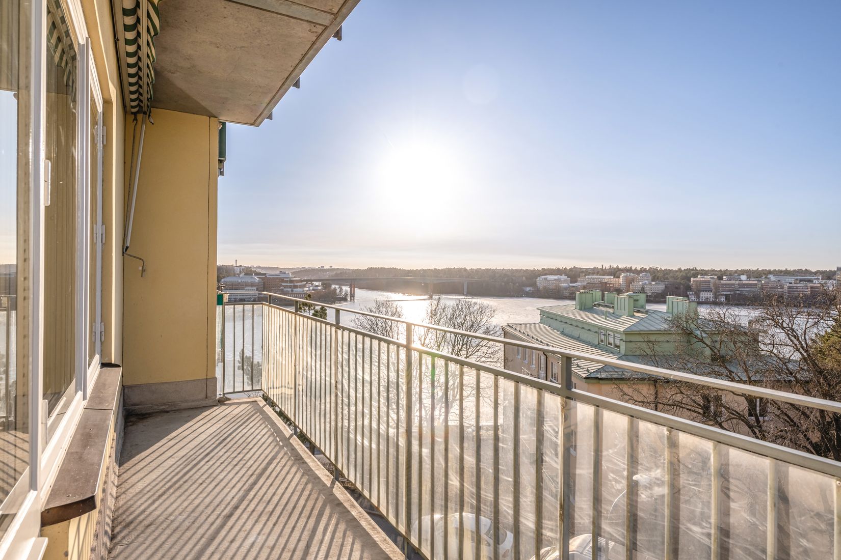 Chans att sätta din egen prägel på denna hörnlägenhet med öppen spis och strålande utsikt mot Tranebergssundet. Bostaden har varit i samma ägor i drygt 30 år vilket vittnar om att man trivs här. Från vardagsrummet nås den längsgående balkongen som vetter mot vattnet och den vackra kvällssolen. Här kan du njuta av sol från eftermiddag ända fram till solnedgång. Vardagsrummet har även en fungerande öppen spis som bidrar till både värme och trivsel. Utöver fönstren mot vattnet och balkongen finns ett charmigt burspråk med utsikt mot träd och grönska. Sovrummet har inga fönster men gott om plats för dubbelsäng och det finns en hel garderobsvägg. Kök finns plats för ett litet frukostbord. I badrummet finns badkar samt fönster som ger ett behagligt dagsljus.