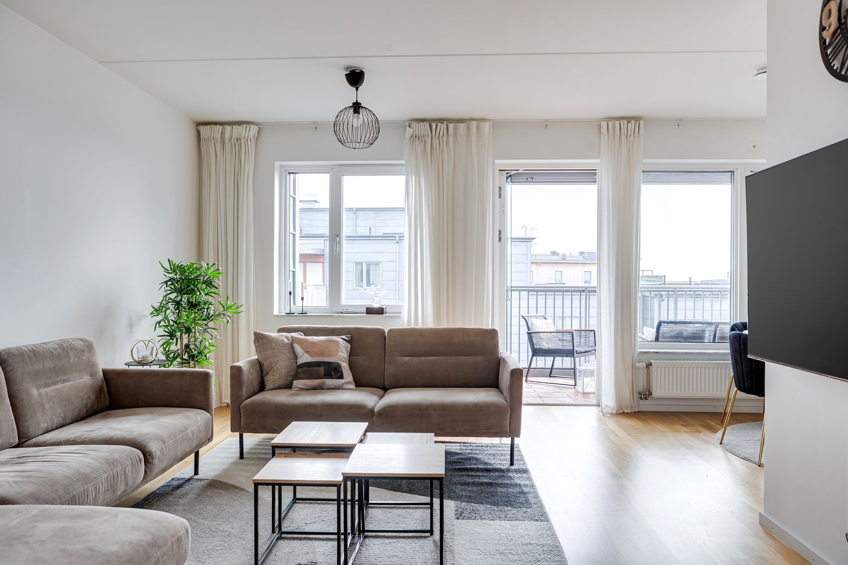 Toppläge i huset på en attraktiv adress, ligger denna välplanerade trerummare. Lägenheten erbjuder ett bekvämt boende med badrum utrustat med tvättmöjligheter, gästtoalett samt en rymlig klädkammare. I det största sovrummet finns även en integrerad garderobsvägg med gott om förvaring. Vardagsrummet är lättmöblerat och upplevs ljust och trivsamt tack vare stora fönster och lägenhetens höga läge. Härifrån nås den inglasade balkongen med måttanpassade vävgardiner och en öppen utsikt mot lekparken och över grannbyggnadens tak. Köket samspelar på ett socialt sätt med vardagsrummet och matplatsen men är samtidigt delvis avskilt. I hallen välkomnas du av ett stilrent klinkergolv och praktiska förvaringslösningar.