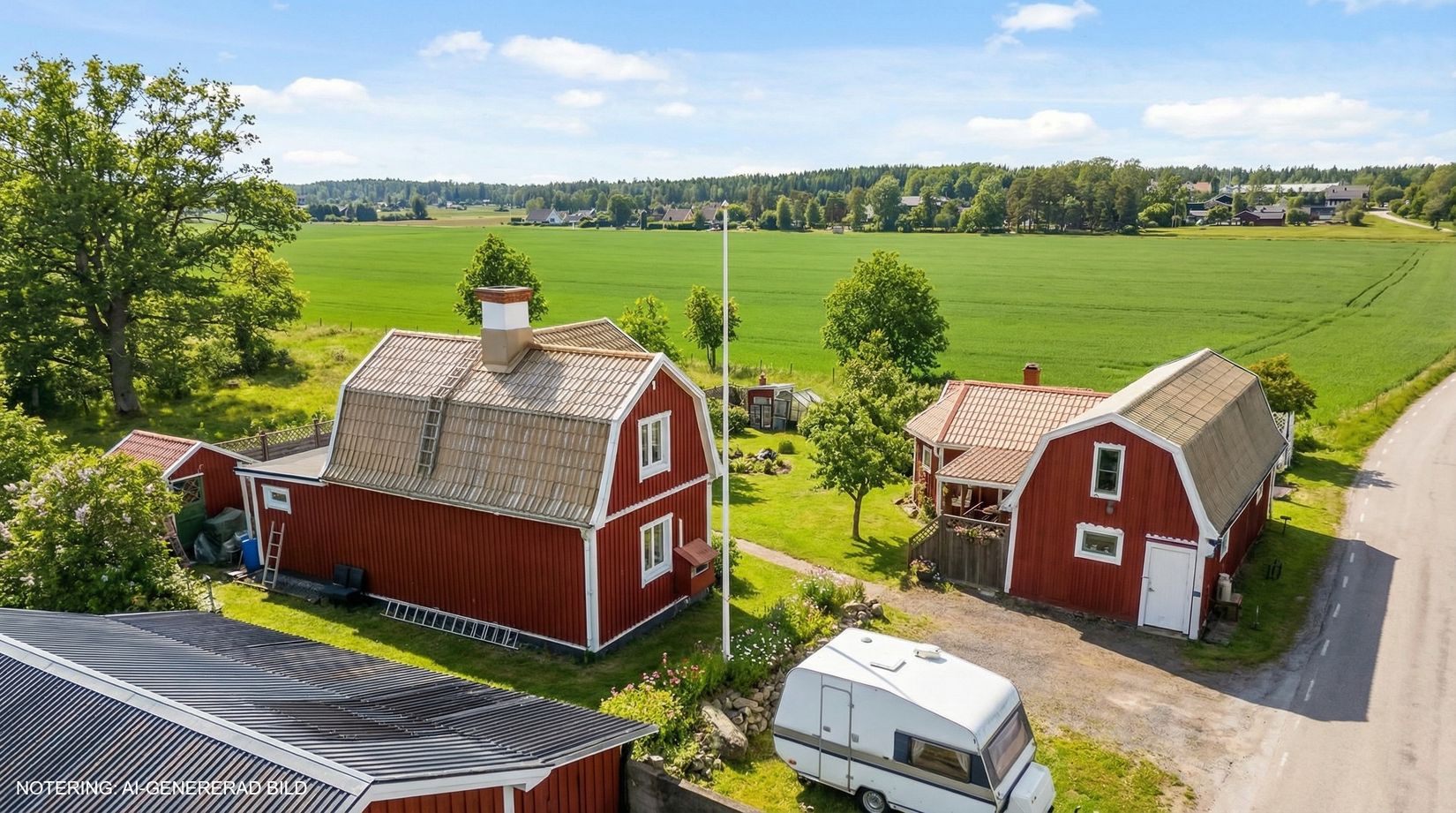 Här finns bland annat garage, gästrum, verkstad, hönshus och en loge - idealiskt för dig som söker plats för hobbyverksamhet, djurhållning eller extra förvaring.