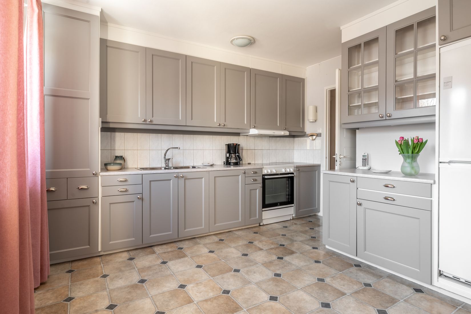 Köket är funktionellt och välplanerat med bra arbetsytor och förvaring. Lägenheten rymmer tre bra sovrum, där ett eller flera kan nyttjas som hemmakontor eller gästrum. Här finns även ett rymligt badrum.