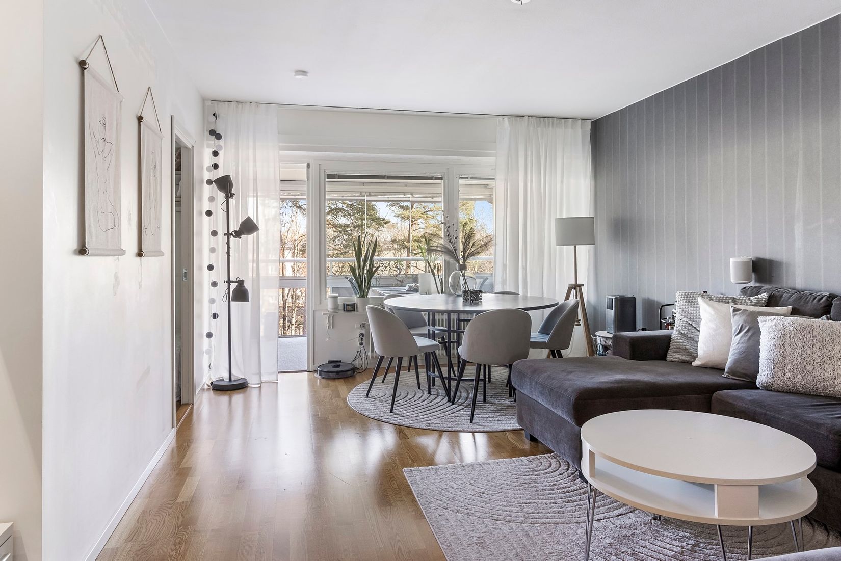 Välkommen till en stilrent renoverad och modern lägenhet med ljusa, luftiga ytor och genomgående fina materialval. Här möts du av ett rymligt vardagsrum med plats för soffgrupp, ett fullt utrustat kök med moderna vitvaror samt två bra sovrum där det mindre passar perfekt som barn-, gäst- eller arbetsrum. Badrummet är helkaklat och smakfullt renoverat med infällda spotlights.