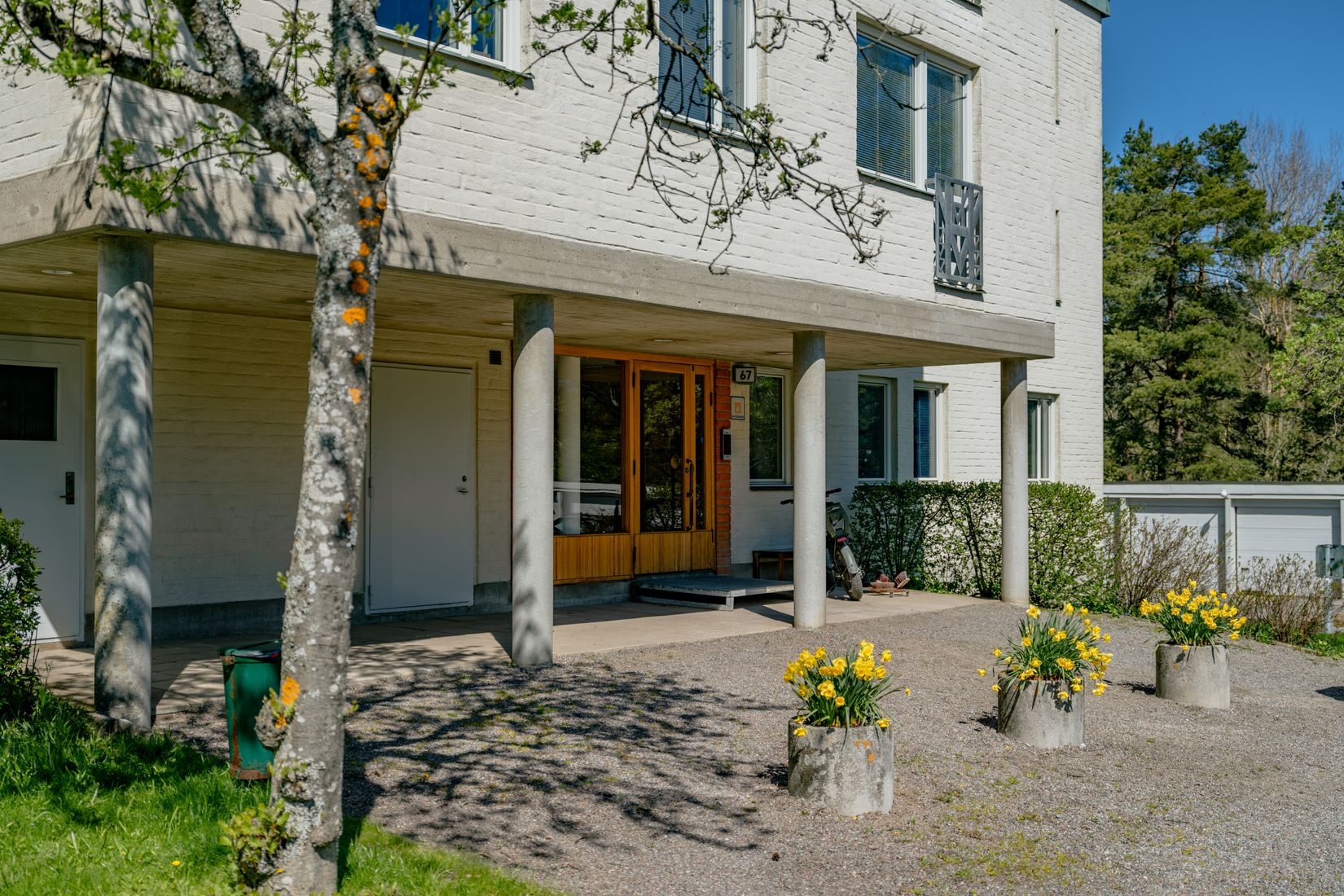 Nu har du chansen att förvärva en ljus och smakfullt renoverad 3:a om 87 kvm i populära pelarhusen, en skuldfri förening med låga avgifter. För den som önskar kan lägenheten disponeras som både en 4:a eller en 5:a med fyra stycken sovrum. Lägenheten är i genomgående bra skick, har fint ljusinsläpp och med en härlig atmosfär. Belägen högst upp i huset. Genomgångslägenhet i ett privat läge och med fri utsikt mot naturen. Från vardagsrummet nås den möblerbara balkongen med ett bra solläge och som vetter mot skogen. Markis finns installerad. Hallen är välkomnande med gott om förvaring och avhängning för ytterkläder och skor. Köket är renoverat och har en naturlig plats för ett stort matbord intill två fönster. Badrummet är helkaklat och är utrustat med golvvämre, handdukstork, badkar, tvättmaskin och vägghängd toalett. Lägenheten nyttjas idag som en 3 rok med två stora sovrum. Gott om förvaringsmöjligheter finns. I föreningen finns barnvagnsförråd och cykelförråd. Fiber bredband indraget i lägenheten. Tvättstuga finns i föreningen samt två förråd disponeras av lägenheten.