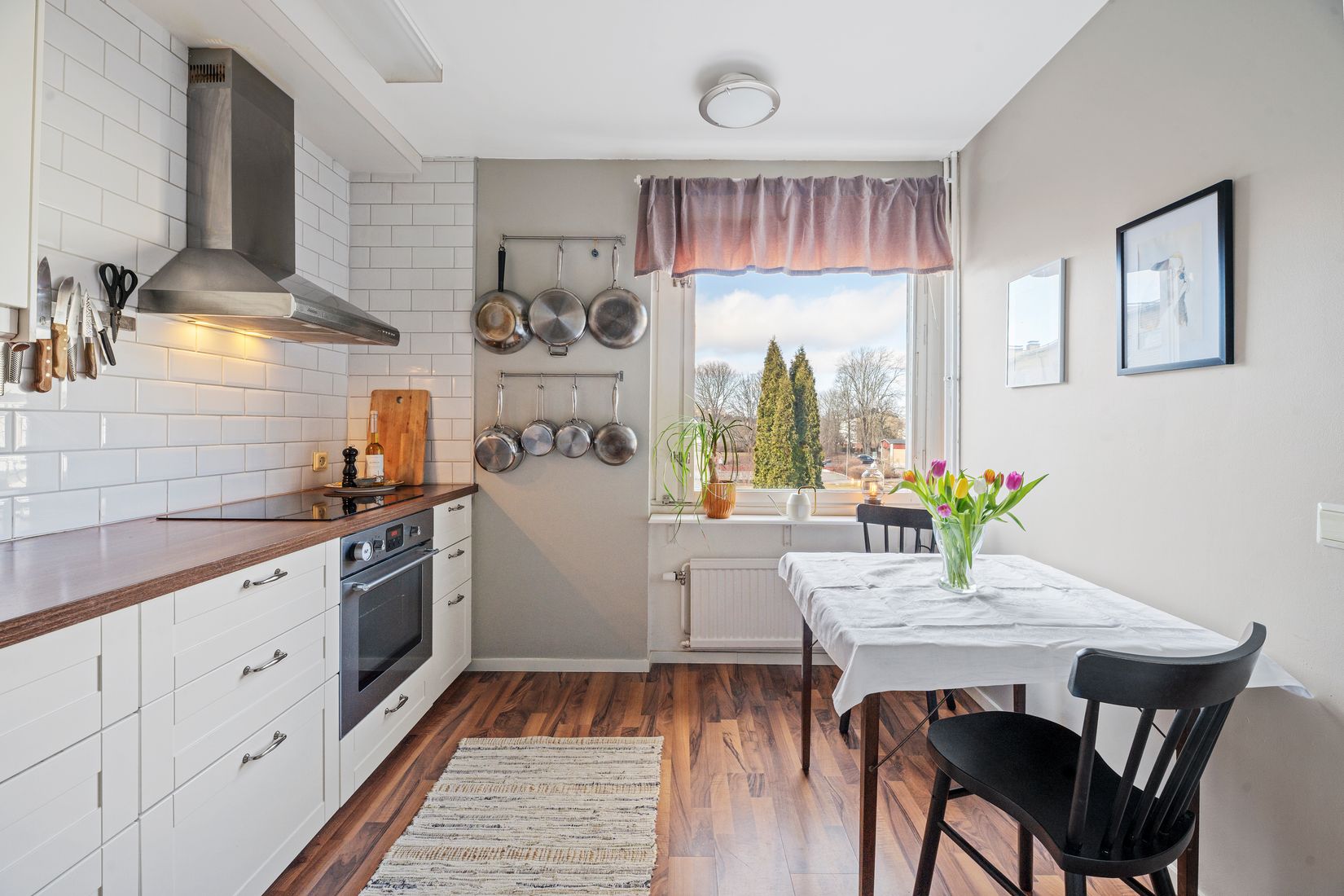 Välkommen till en mycket trevlig bostad i fint skick där generösa ytor och ett fantastiskt ljusinsläpp skapar en omedelbar hemkänsla. Denna välplanerade tvåa om 65 kvadratmeter erbjuder en perfekt balans mellan sociala ytor och privat lugn. Redan i den rymliga hallen möts man av smarta förvaringslösningar i form av en rejäl garderobsvägg, vilket sätter tonen för den ordning och reda som präglar hela hemmet. Härifrån leds man vidare in i det stora och luftiga vardagsrummet, som rymmer både en rejäl soffgrupp och en matplats för större sällskap – en naturlig samlingspunkt för både vardag och fest. Från vardagsrummet kliver man ut på den stora, möblerbara balkongen som bjuder på en vidsträckt utsikt över de grönskande omgivningarna – en given plats för avkoppling under sommarhalvåret.