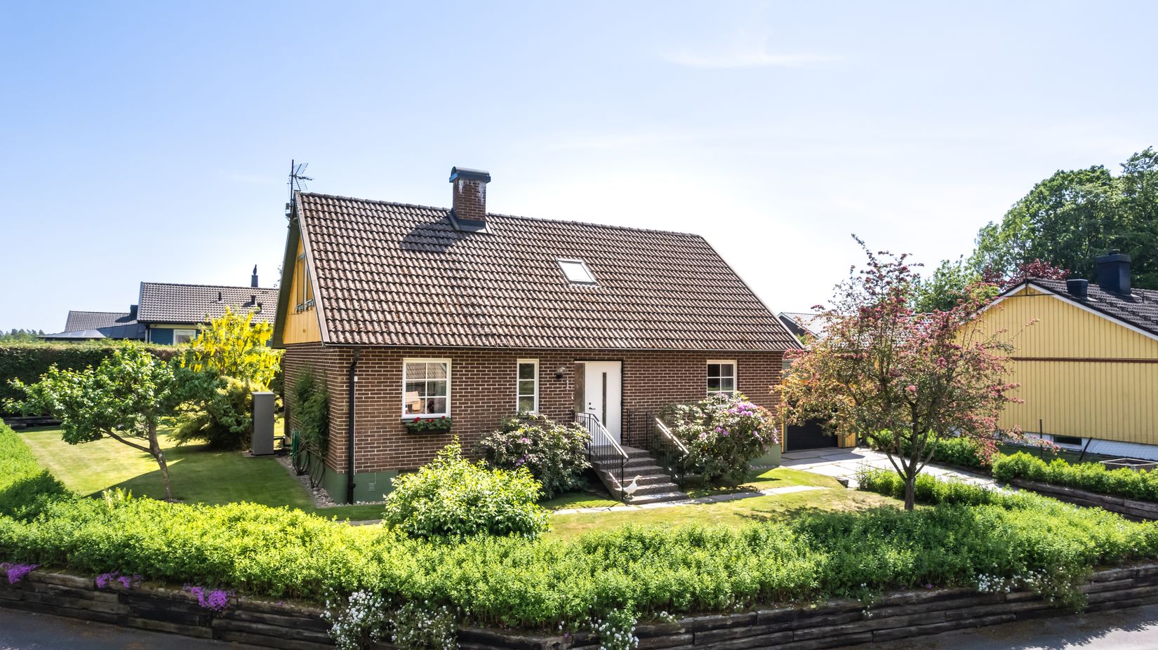 Trädgården är lummig och välskött med fina grönytor och uteplats där man kan njuta av lugnet.