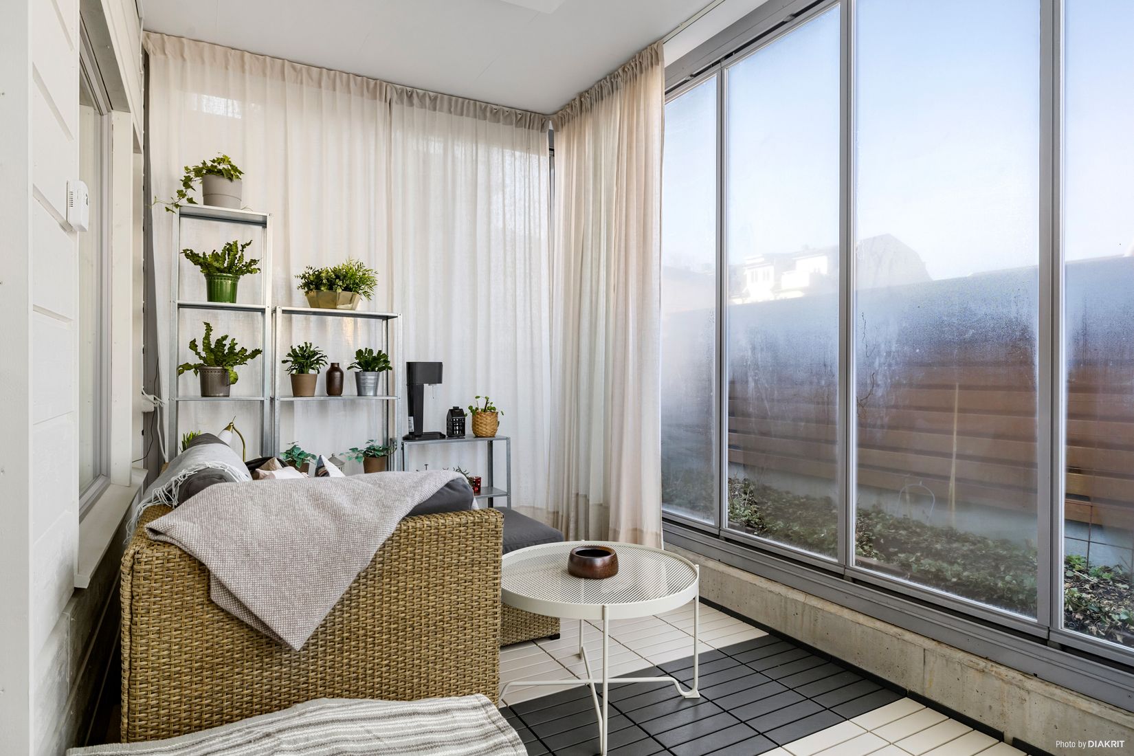 Bostaden präglas av en generös takhöjd som tillsammans med den öppna planlösningen skapar en härligt luftig och rymlig boendemiljö. Köket och vardagsrummet samspelar i en öppen och inbjudande planlösning där sällskapsytorna förlängs av ett trevligt inglasat uterum som snabbt blir en favoritplats att njuta av under stora delar av året. För de lite kyligare dagarna ger infravärmaren extra värme och komfort. Utöver uterummet finns även dubbla uteplatser, vilket ger fina möjligheter till både morgon- och kvällssol. På föreningens innergård finns dessutom flera trivsamma platser att slå sig ner på.