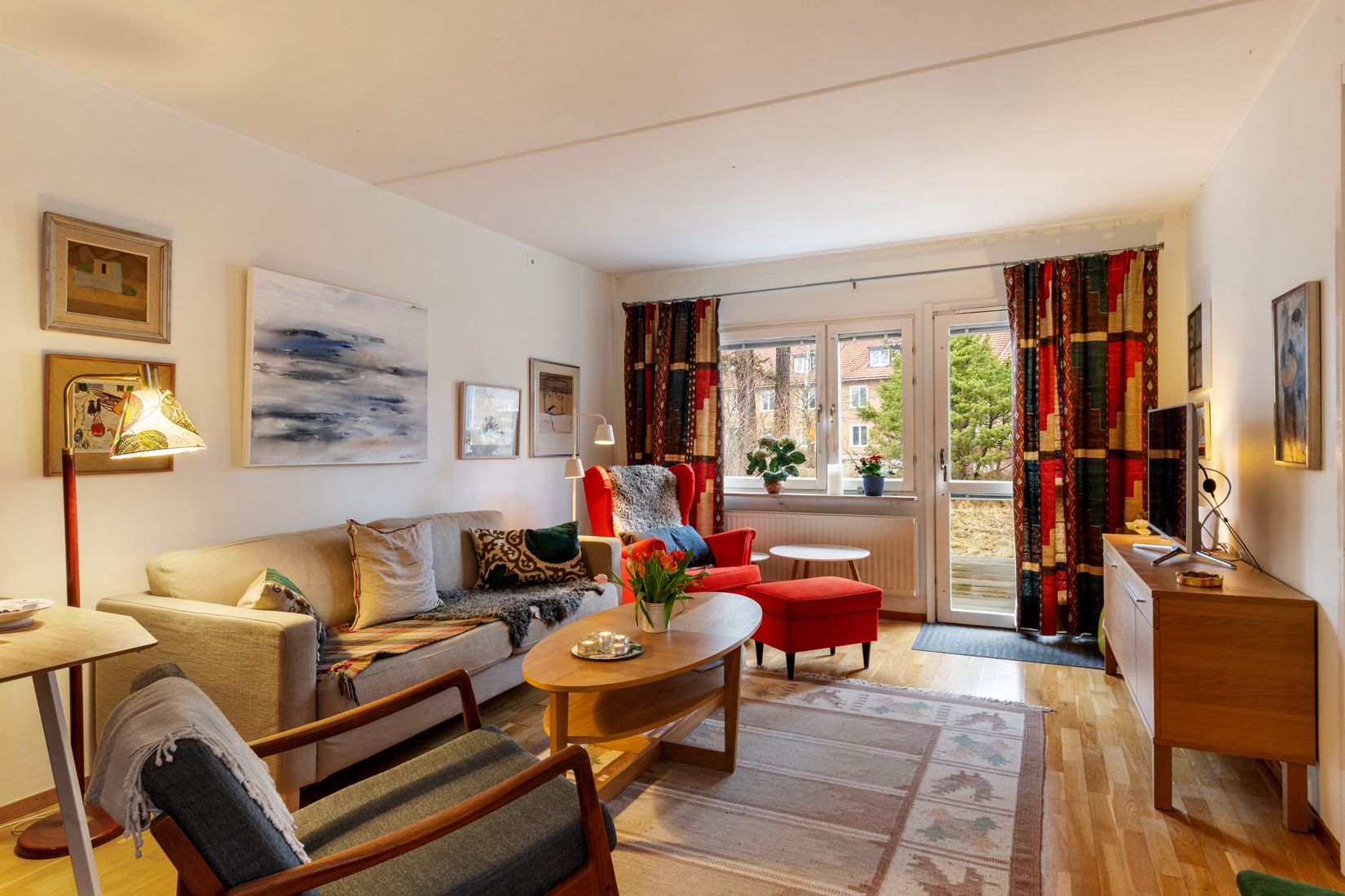 Lägenheten erbjuder ett lättillgängligt boende utan trappor och en härlig uteplats som förlänger bostaden under årets varmare månader – perfekt för morgonkaffet, middagar utomhus eller bara avkoppling i solen. 67 välplanerade kvm med rymligt kök med fint utrymme för matbord och flera sittande gäster, väldisponerat allrum med plats för soffa och tv-del samt ett rymligt sovrum med en egen klädkammare i anslutning. Badrummet är stort med en rymlig dusch, wc samt kommod.
