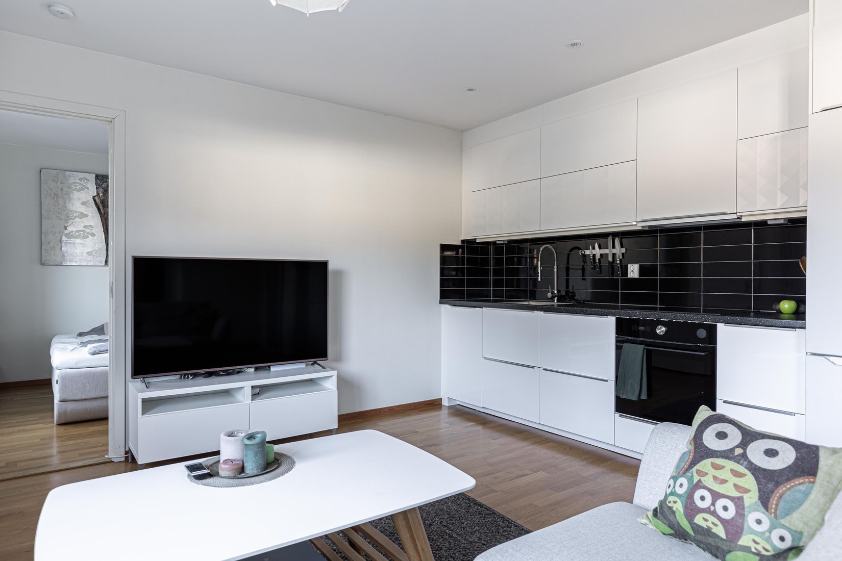 Lägenheten präglas av ljusa ytskikt och genomgående parkettgolv, vilket ger ett modernt och harmoniskt helhetsintryck. Här finns även goda förvaringsmöjligheter genom flertalet garderober, vilket gör det enkelt att hålla ordning i hemmet. Det helkaklade badrummet är fräscht och funktionellt.