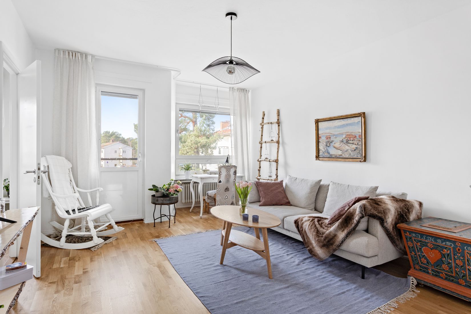 Högst upp i huset bland Örnstigens charmiga 50-talsbebyggelse finner du denna fantastiska trerummare med 67 kvadratmeter av välplanerat boende. Ett hem som stoltserar med utsikt över lummig grönska, vilket du kan njuta av från både köket och sovrummen. Balkongen når du från vardagsrum och ligger i optimalt västerläge, perfekt för soliga eftermiddagar. Lägenheten har ett nyrenoverat badrum och nyligen renoverade ytskikt som ger den där välkommen hem känslan. Bostadsrätten är del av en förening med mycket god ekonomi. Läget är oslagbart med närhet till trevliga promenadstråk, Roslagsbanan och bussar. En kort promenad tar dig till populära Norskogsbadet och dess kringliggande lekplats och tennisbana. Två förråd ingår dessutom i avgiften, vilket ger extra förvaringsutrymme. Missa inte denna chans!