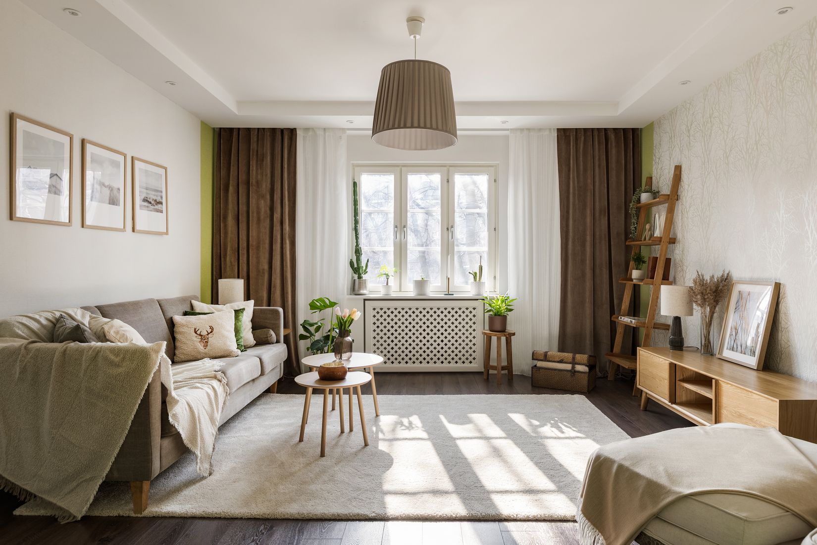 Vardagsrummet är rymligt och fylls av naturligt ljus från de stora fönstren. Här finns gott om plats för en stor soffgrupp och tv-möbel. Rummet gör det enkelt att vara social hemma och bjuda över vänner på middag, filmkväll eller en avslappnad kväll tillsammans.
