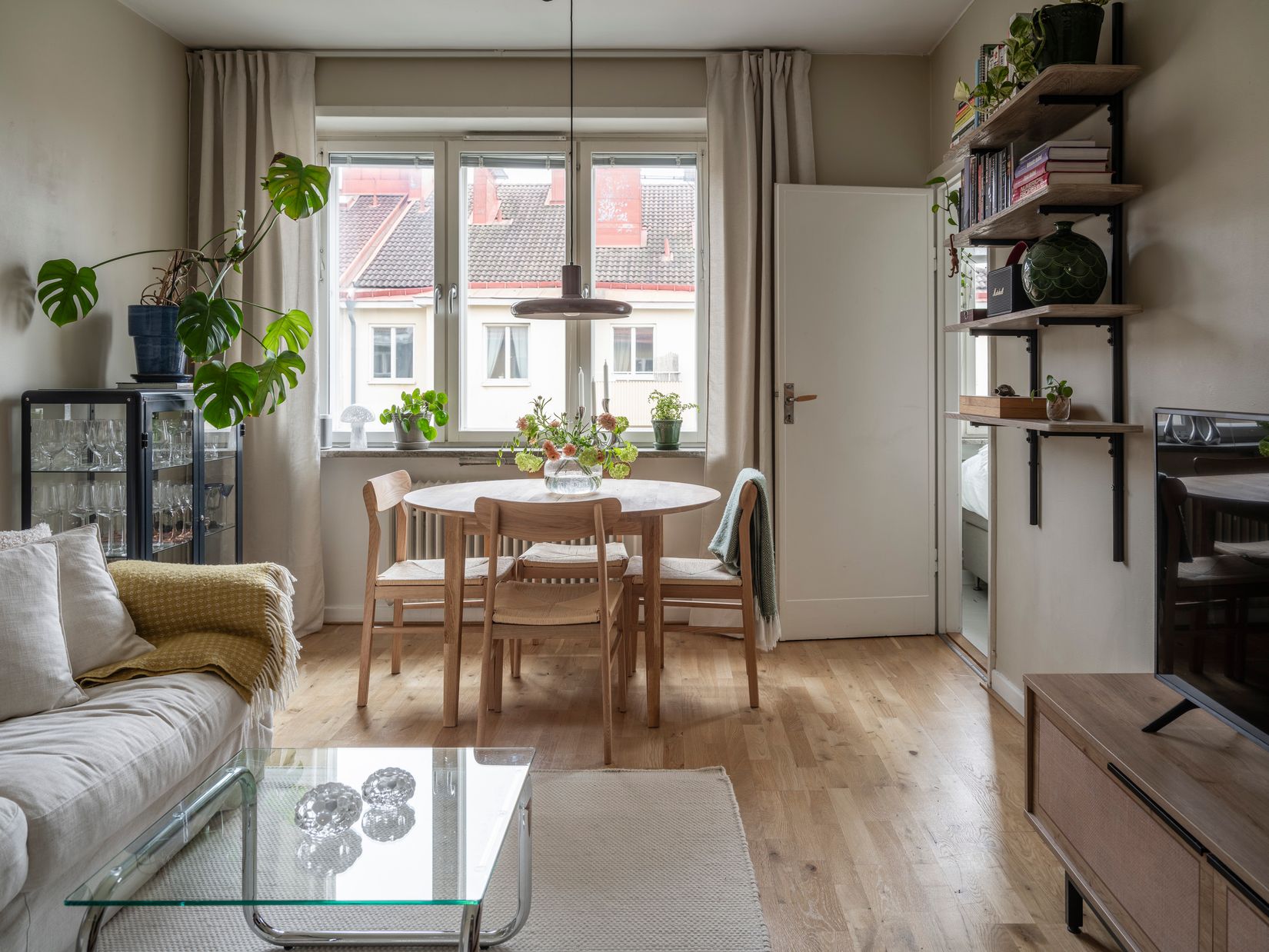 Bostaden erbjuder ett socialt vardagsrum med plats för både soffgrupp och matbord, perfekt för både vardag och umgänge. Köket är separat och välplanerat med bra arbetsytor och förvaring, vilket ger en “riktigt kök”-känsla som är svår att hitta i mindre lägenheter. Sovdelen skapar en naturlig avskildhet och gör att bostaden upplevs som en smart planerad minitvåa.