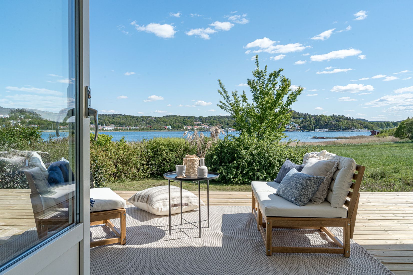 På den stora altanen kan ni njuta av vårens första solstrålar med en enastående vy över Ljungskileviken.