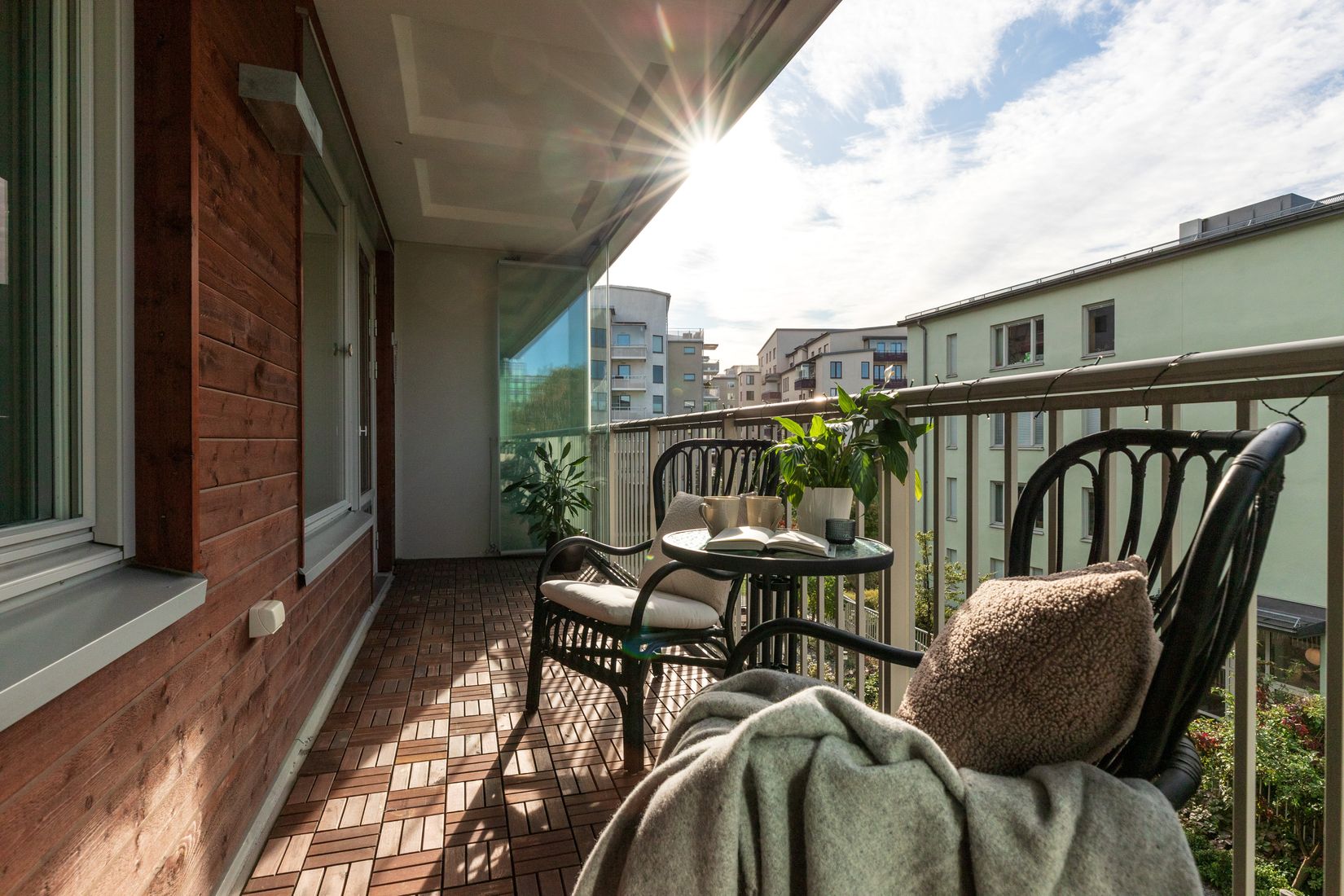 Från vardagsrummet nås den stora balkongen i soligt sydvästläge, där du kan njuta av solen från förmiddag till kväll och skapa din egen oas med plats för både matgrupp och loungemöbler. Bostaden erbjuder tre väl tilltagna sovrum, gott om förvaringsmöjligheter samt ett helkaklat badrum och en separat WC – en praktisk lösning för familjen eller när gäster är på besök.