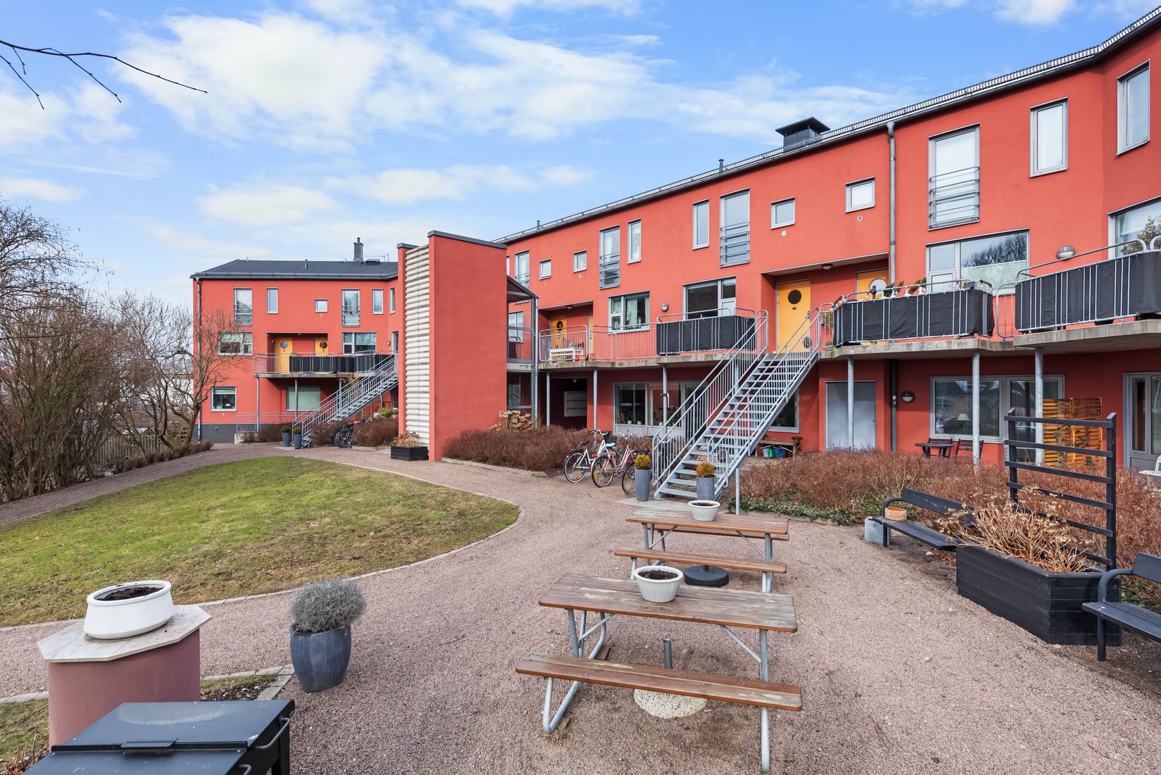 Här möts du av en välkomnande atmosfär med fint ljusinsläpp. Det luftiga vardagsrummet har plats för både soffgrupp och matplats, och från rummet nås köket som har utsikt mot en trevlig innegård. På bottenplan har vi ett badrum samt sovrum. En trappa upp har vi två sovrum, badrum samt rymlig klädkammare.