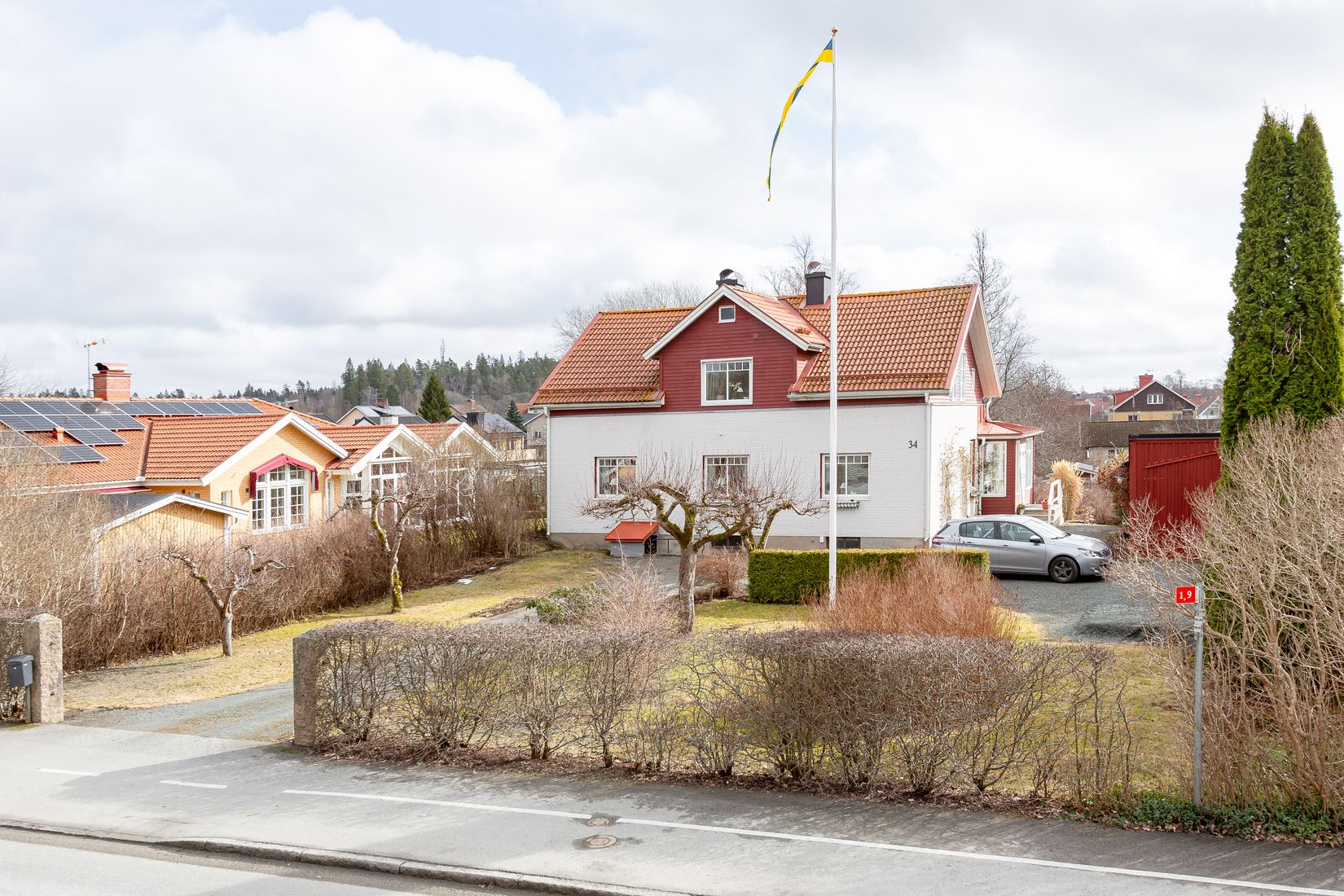 I insynsskyddat läge finns den här rymliga sekelskiftevillan, centralt i Annefors.
