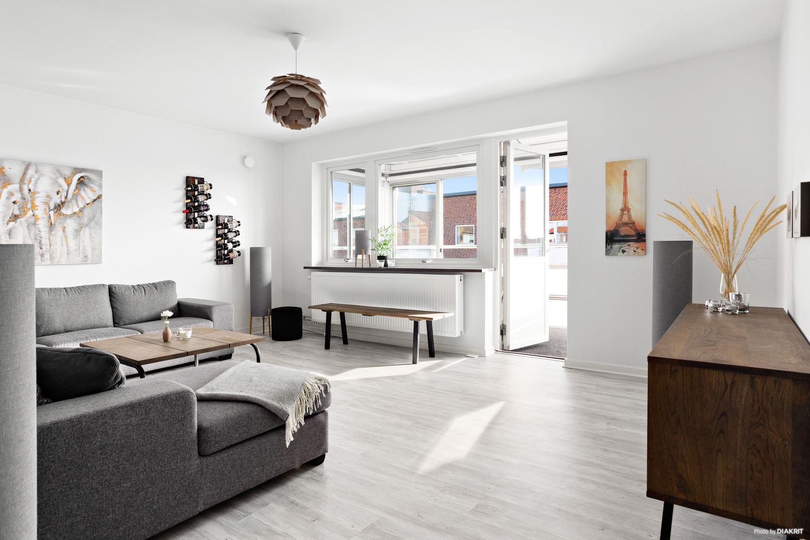 Ett bekvämt och stilfullt boende där lugnet möter stadens puls – högst upp i huset på Ripagatan 21.
