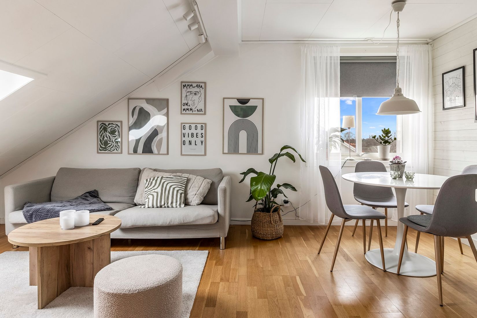 Påkostad vindslägenhet med öppen planlösning, massor med karaktär och optimalt planerad utifrån bostadsyta! Nytt, trendigt kök helt i rostfritt.