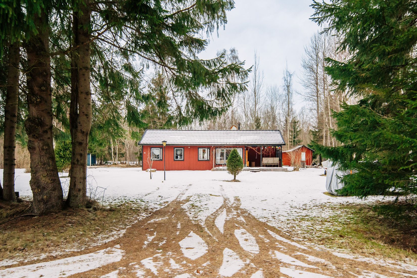 Här erbjuds du även ett bekvämt badrum med dusch, wc, tvättställ samt toppmatad tvättmaskin. Från verandan når du ett isolerat extrarum som passar utmärkt som gästrum, extra sovrum eller hobbyutrymme.