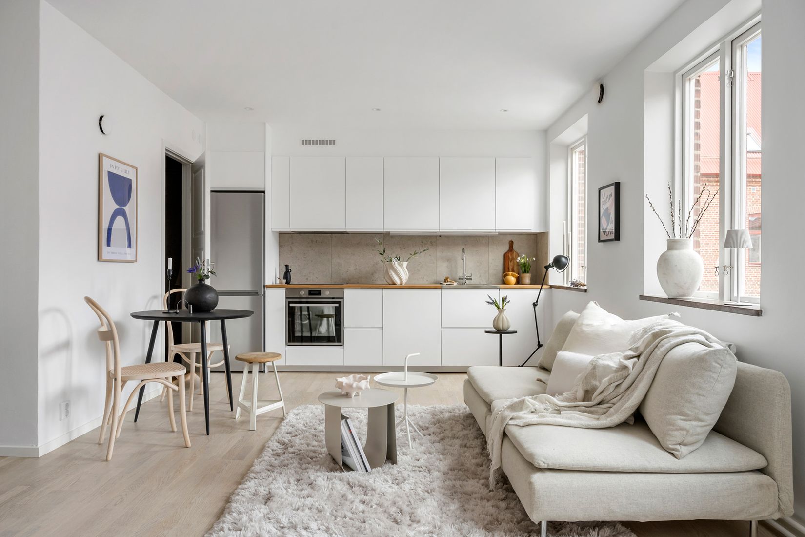 Här möts du av en bostad där varje kvadratmeter är noggrant planerad för att skapa en perfekt balans mellan funktion och trivsel. Den ljusa och luftiga atmosfären genomsyrar hela lägenheten och ger ett hem som känns både rymligt och inbjudande trots sitt kompakta format.