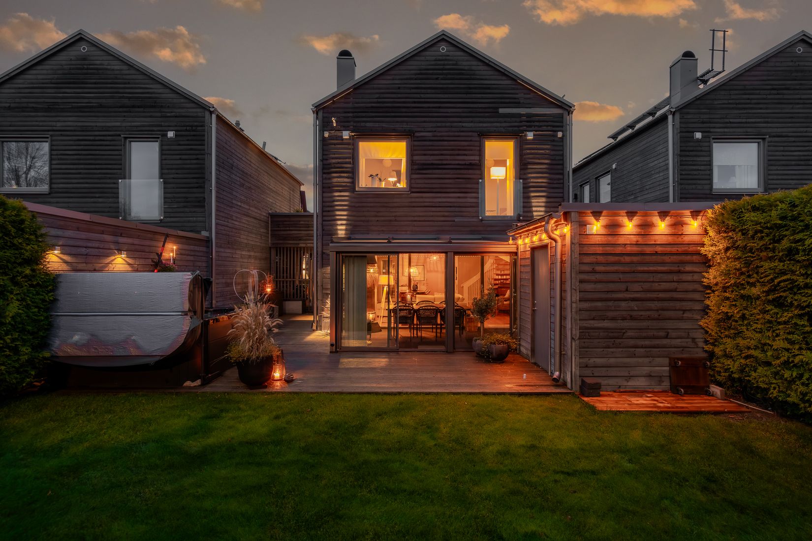Den privata och insynsskyddade trädgården erbjuder ett inbjudande utespa - perfekt för avkoppling efter en dag på golfbanan eller en kall vinterdag.