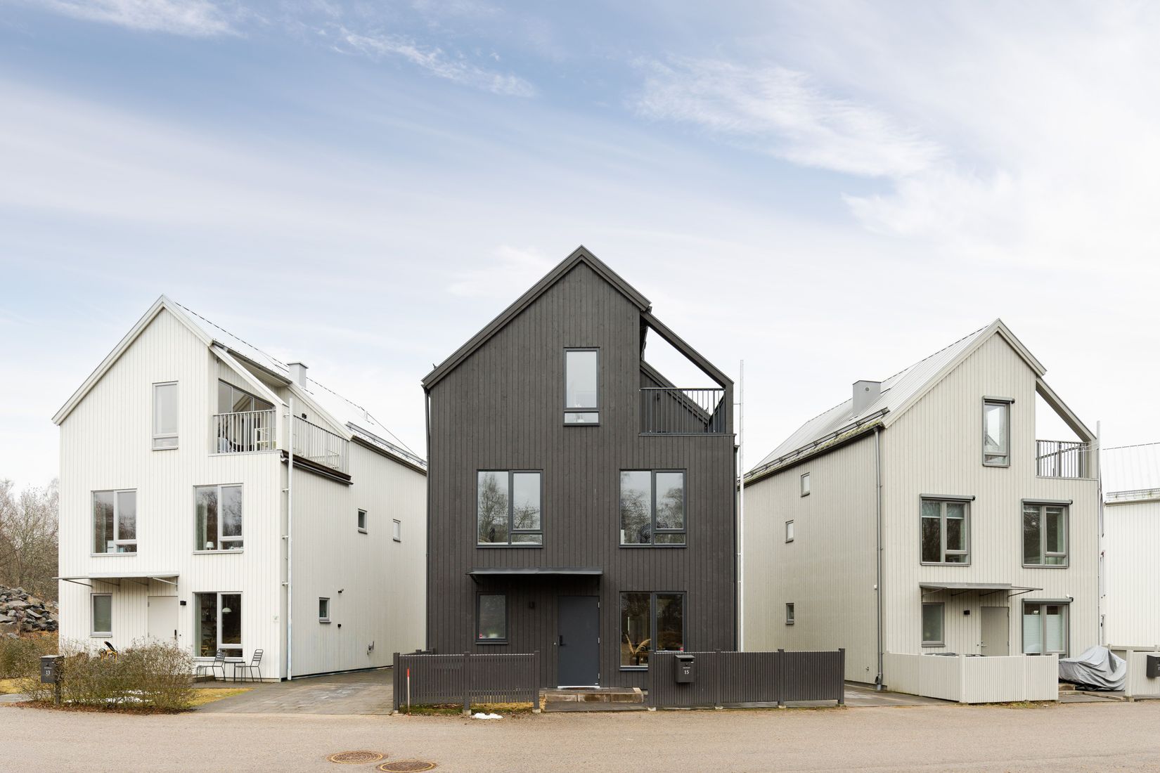 Entréplanet präglas av sociala ytor där kök och vardagsrum samspelar på ett naturligt sätt. Köket är modernt och funktionellt utformat med goda arbetsytor och förvaring samtidigt som planlösningen skapar en öppen kontakt mot vardagsrummet. Härifrån når ni även bostadens uteplats på baksidan. Tillsammans med uteplatsen på framsidan skapas fina möjligheter att följa dagens olika soltimmar och enkelt röra sig mellan inne- och utemiljö. En trappa upp möts ni av bostadens mer privata delar med tre sovrum, generösa förvaringsmöjligheter och ett rymligt badrum med tillhörande tvättdel. På bostadens översta våningsplan öppnar sig ytterligare sällskapsytor i form av två allrum som erbjuder stor flexibilitet. Här finns gott om plats att skapa miljöer för både avkoppling, arbete och umgänge. Från ett av rummen når ni även bostadens takterrass. En härlig plats där ni kan njuta av utsikten över området och låta blicken vila mot den närliggande naturen.