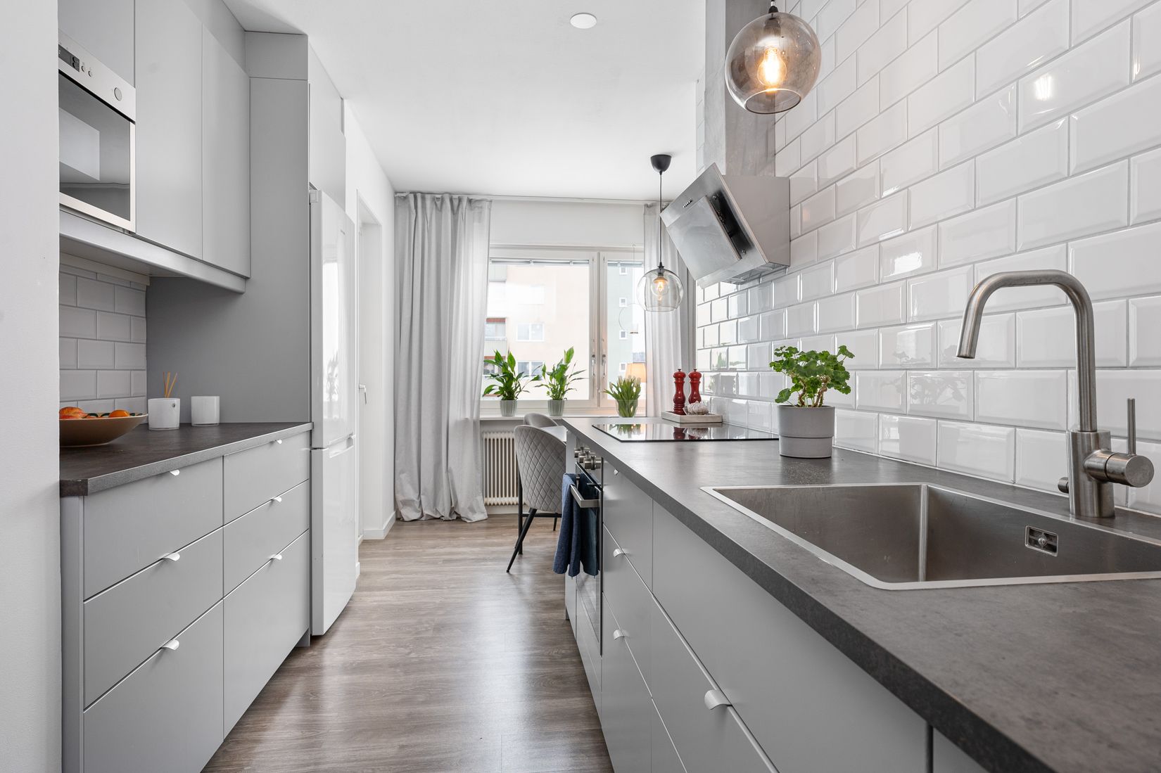 Smakfullt renoverad tvårummare på översta våningsplanet. Hallen är ljus och rymlig samt försedd med en stor klädkammare med platsbyggda hyllor. Vardagsrummet ligger i anslutning och har plats för både soffgrupp och matbord. I motsatt riktning finns det härliga sovrummet med stora fönsterpartiet samt flertalet garderober. Köket är välutrustat och modernt samt försett med utgång till balkong. Det kaklade badrummet är förberett för tvättmaskin.
