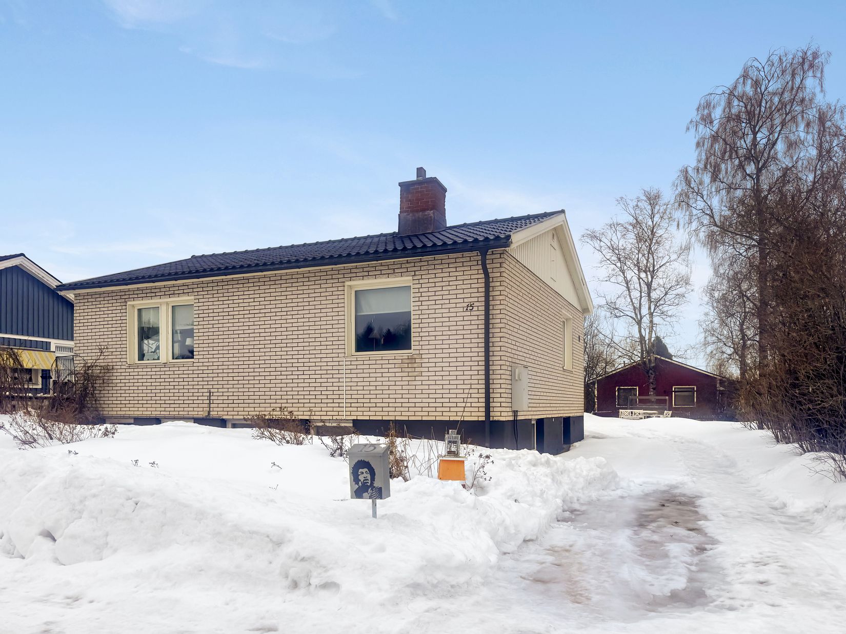 På Björnmossevägen 15 finner du denna charmiga mindre villa med källare. I entréplanet finner du två sovrum, vardagsrum, kök och badrum som renoverats 2010. I källaren finns bastu med wc och dusch, gillestuga med öppen spis med insats, tvättstuga och förråd. Villan har mestadels 3-glasfönster från 2004, ett relativt nytt plåttak, värms upp med fjärrvärme samt så är stammarna renoverade med nya golvbrunnar och relining utfört. På gården finns kallgarage med förråd samt friggebod.