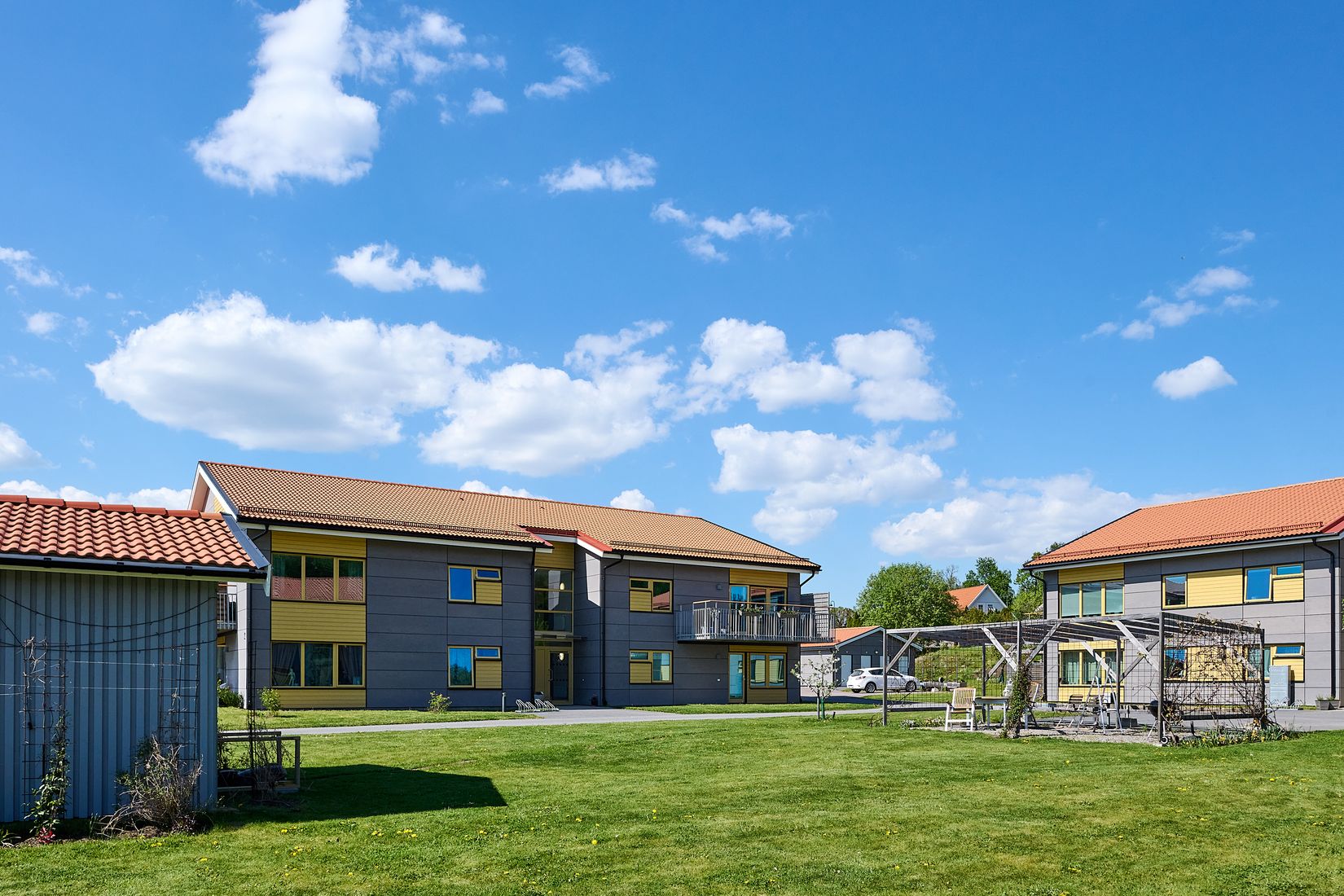 Välkommen till en ljus och inbjudande lägenhet på bottenplan med öppen planlösning som fylls av ett generöst ljusinsläpp från flera väderstreck, vilket skapar en härlig känsla av rymd och luft. Den stora uteplatsen i soligt läge hela dagen blir naturligt en samlingspunkt för både vardag och avkoppling. Här kan du njuta av morgonkaffet i stillhet, långa middagar under bar himmel eller bara luta dig tillbaka och ta in lugnet. För den trädgårdsintresserade finns möjlighet till odling direkt på uteplatsen, och en pallkrage på den tillhörande gräsmattan gör det enkelt att skapa egna grönskande hörn och odla egna grönsaker eller blommor.