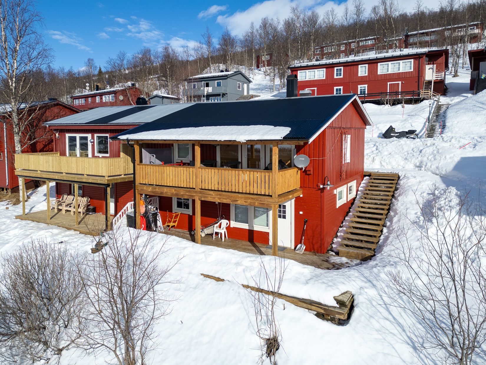 Hela fastigheten är totalrenoverad och resultatet är en genomtänkt fjällbostad där stora investeringar redan är gjorda. Här kombineras ett attraktivt ski in–ski out-läge med praktiska lösningar, generösa uteplatser och en planlösning som gör bostaden väl lämpad både för familjeliv, gäster och ett aktivt fjälliv året runt.