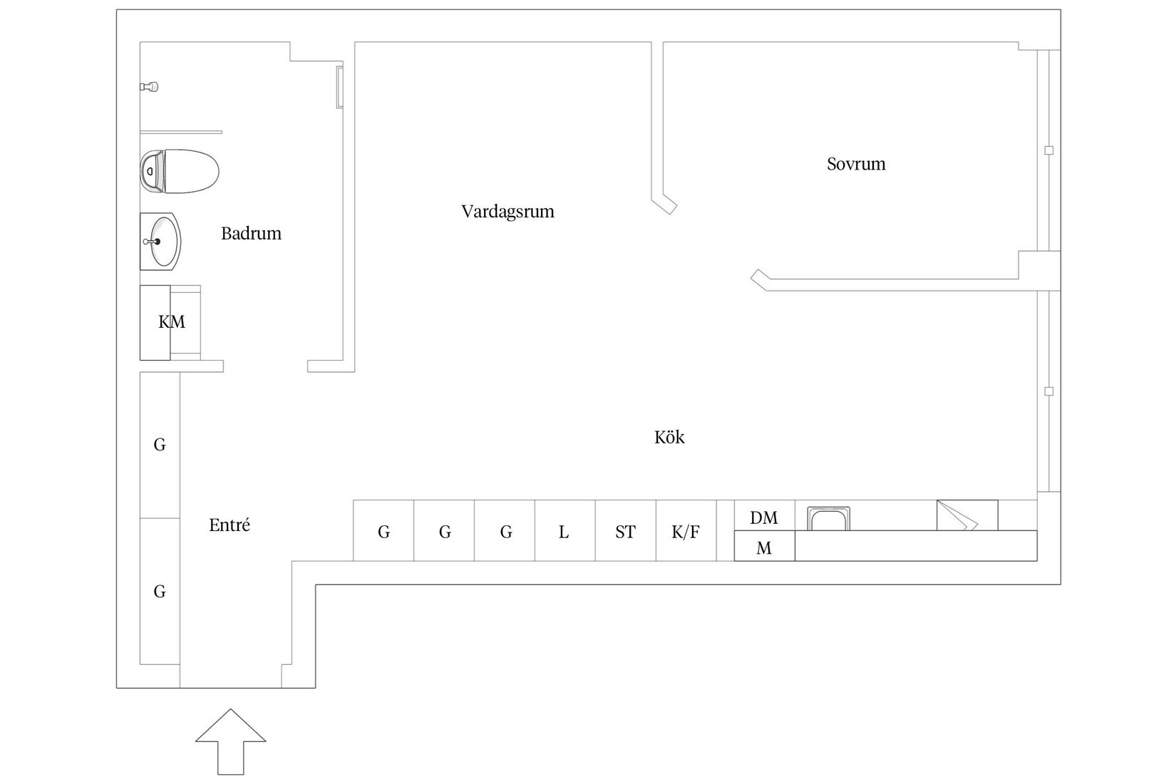 Planlösningen är flexibel och ger goda möjligheter att skapa ett separat sovrum utan att kompromissa med sociala ytor, vilket gör lägenheten idealisk både för den som vill bo själv med extra utrymme och för paret som söker ett yteffektivt hem.