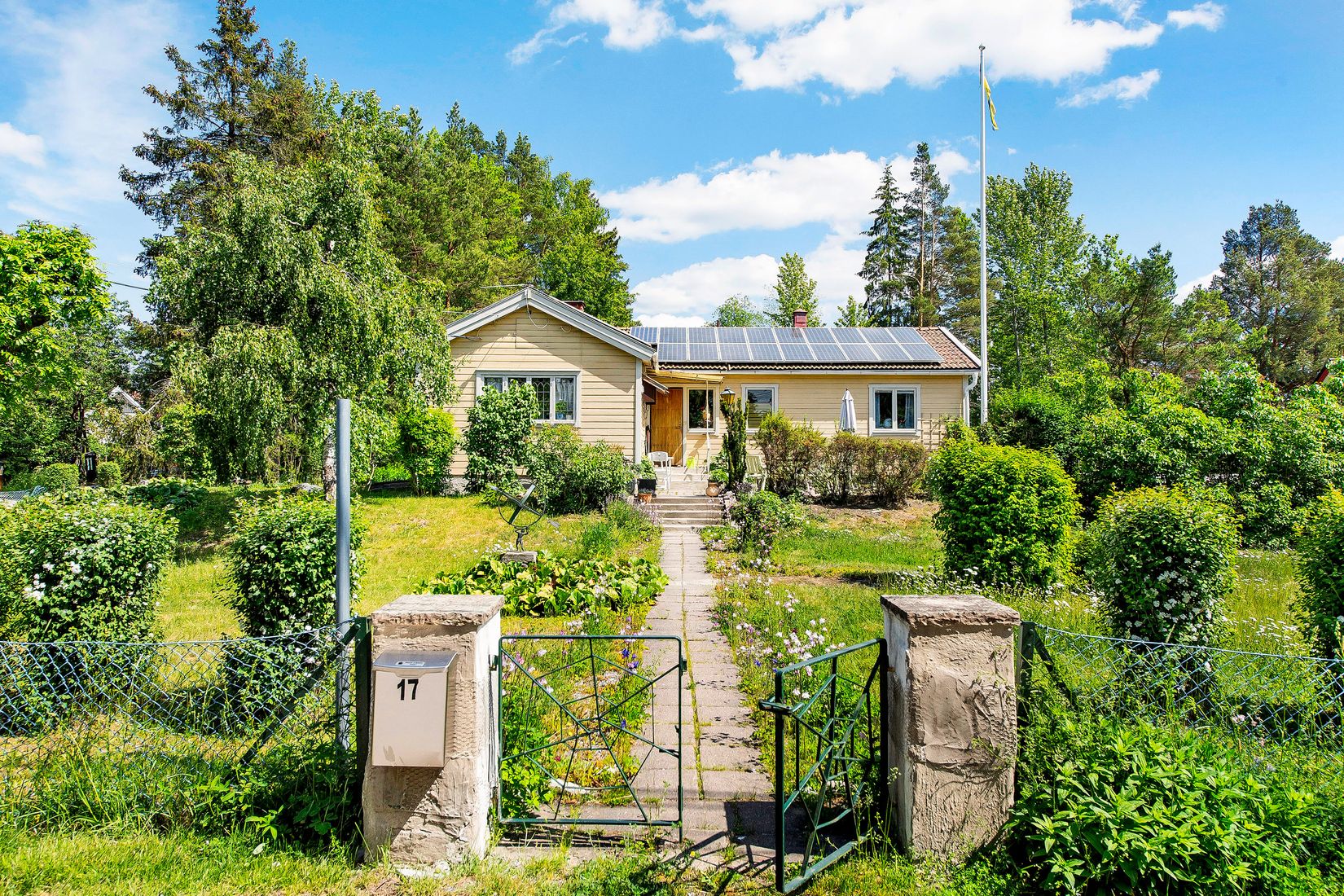 Tomten ligger plant och kobinerar ett fantastiskt solläge med gräsmatta och fin äppellund. Lättskött och rogivande med gott om plats för både lek och odling. Här finns även stor potential för den som drömmer om att bygga ut, modernisera eller skapa något nytt på en attraktiv adress.