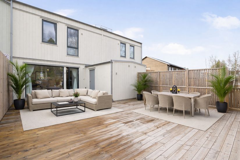 +Stor altan med förråd i nordost mot grönska