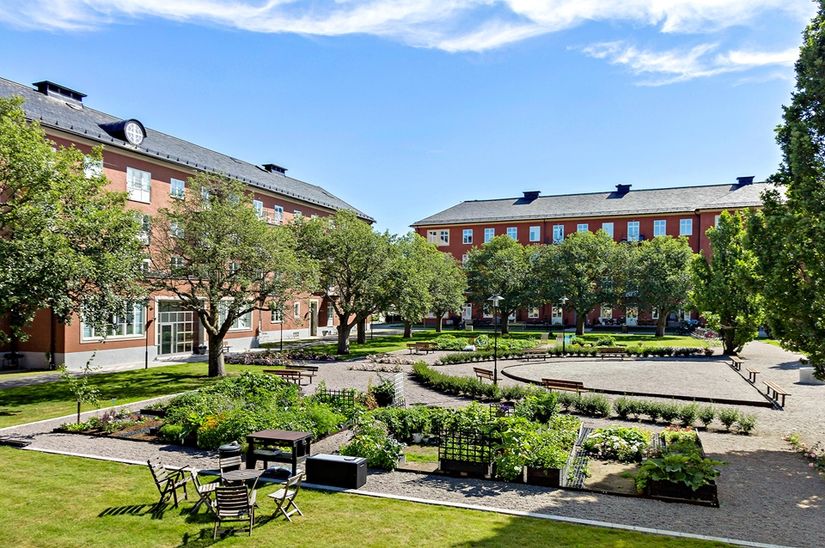 Direkt utanför entrén möts ni av lummiga Klockhusparken med flera grillplatser och trevliga ytor att umgås på. Föreningen äger marken och erbjuder dessutom parkeringsplatser i varmgarage.