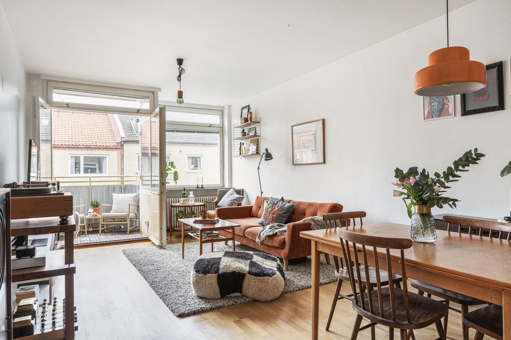 Vardagsrum - Vardagsrummet rymmer soffgrupp och matbord och här finns utgång till balkongen som vetter mot Kamrergatan.