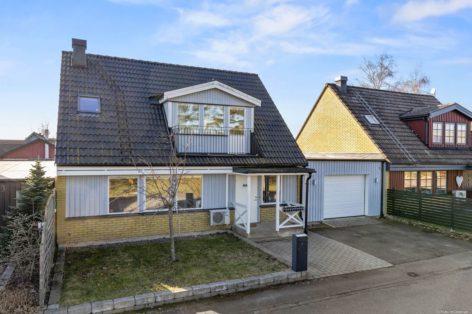 Till fastigheten hör ett rymligt integrerat garage som ger goda möjligheter till både parkering och förvaring samt uppfart med plats för bilen.