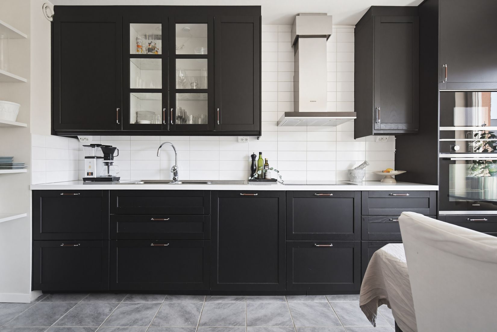 Redan i entrén möts du av en rymlig och möblerbar hall med praktiskt klinkergolv som sätter tonen för bostadens genomtänkta planlösning. Köket är modernt och inrett med mörka köksluckor och ljus bänkskiva, allt renoverat 2020. Här finns maskinell utrustning såsom induktionshäll, kolfilterfläkt, ugn och micro i högskåp, diskmaskin och kyl och frys i fullhöjd. Vid fönstret finns en matplats för 4-6 personer. Vardagsrummet är ljust och har utgång till en inglasad balkong som ger ett extra användbart utrymme under stora delar av året. På detta plan finns även två sovrum samt en gäst-WC utrustad med tvättmaskin.
