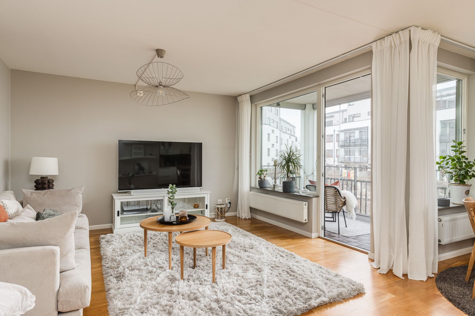 Bostaden erbjuder en öppen planlösning mellan kök, matplats och vardagsrum som låter er umgås över rumsgränserna. Från vardagsrummet når man den inglasade balkongen som vetter mot en fin innegård. Två väl tilltagna sovrum ger gott om plats för både familj och gäster, och båda rummen har bra förvaringsmöjligheter.Det stilrena badrummet är helkaklat och utrustat med tvättmaskin för extra bekvämlighet. Föreningen erbjuder dessutom gemensamma tvättstugor som man som boende nyttjar fritt. Bostadens hall är rymlig med plats för ytterkläder, förvaring och en hallmöbel.