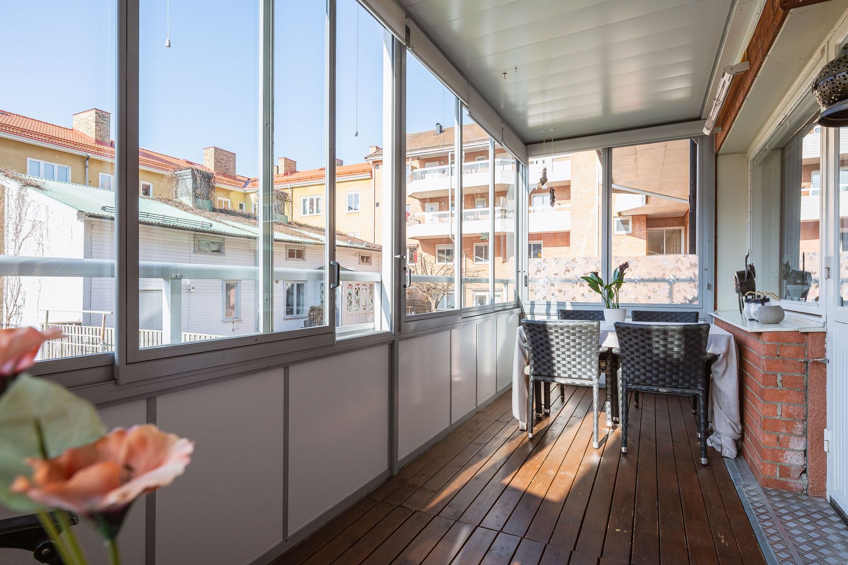 På attraktiva Söder erbjuds nu denna mycket trivsamma och välplanerade trea om 74 kvm. Bostaden präglas av ett fint ljusinsläpp och erbjuder flera uppskattade kvaliteter såsom fungerande öppen spis, stor inglasad balkong i soligt västerläge mot lugn innergård samt garanterad parkeringsplats i föreningen. Planlösningen är både social och inbjudande där generösa fönsterpartier låter ljuset flöda genom rummen. Det rymliga vardagsrummet erbjuder gott om plats för både soffgrupp och matbord och blir en naturlig samlingspunkt i hemmet, inte minst tack vare den stämningsfulla öppna spisen. Härifrån nås även den stora inglasade balkongen som fungerar som ett extra rum under stora delar av året. Vidare erbjuds ett rymligt kök, två rogivande sovrum samt ett stilrent helkaklat badrum.