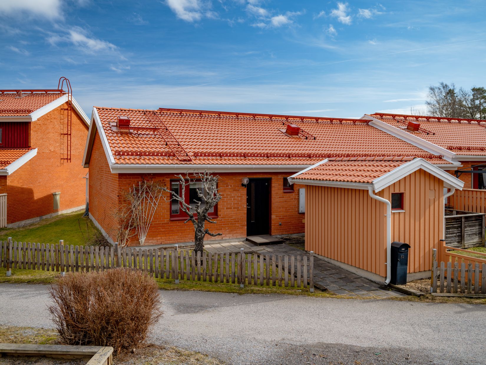 Lägenheten ligger bekvämt på bottenplan och har en stor uteplats både på fram- och baksidan, vilket ger gott om utrymme för avkoppling och sociala tillställningar. På framsidan finns dessutom ett praktiskt förrådsutrymme, medan lägenheten har tillgång till en vind för extra förvaring.