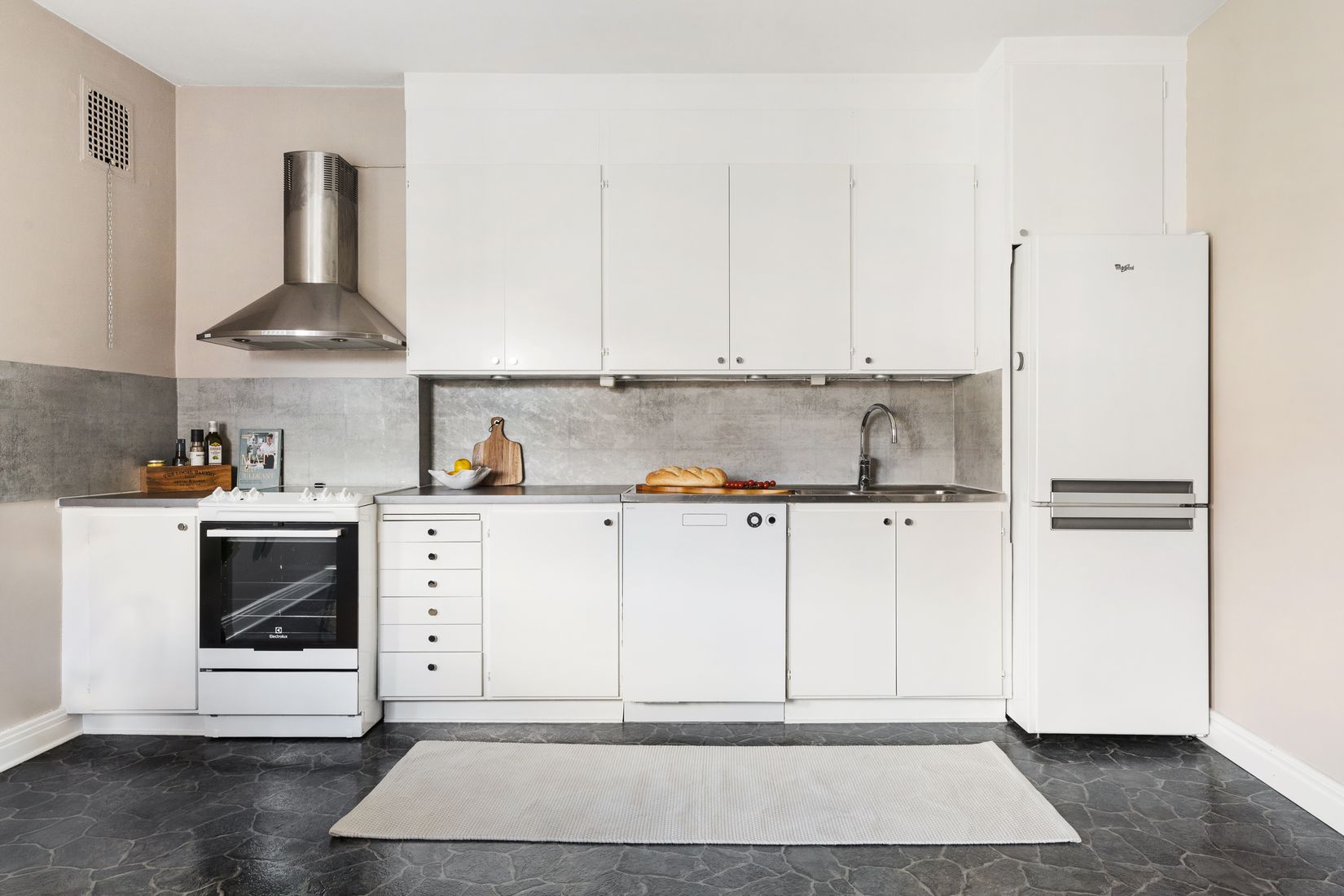 Lägenheten har en genomtänkt planlösning där varje kvadratmeter tas tillvara på ett fint sätt. Vardagsrummet är stort och luftigt med gott om plats för både soffgrupp, skrivbord och en naturlig sovdel, vilket gör det enkelt att skapa en funktionell och trivsam bostad. De stora fönstren ger rummet ett fint ljusinsläpp och bidrar till den öppna och inbjudande känslan.