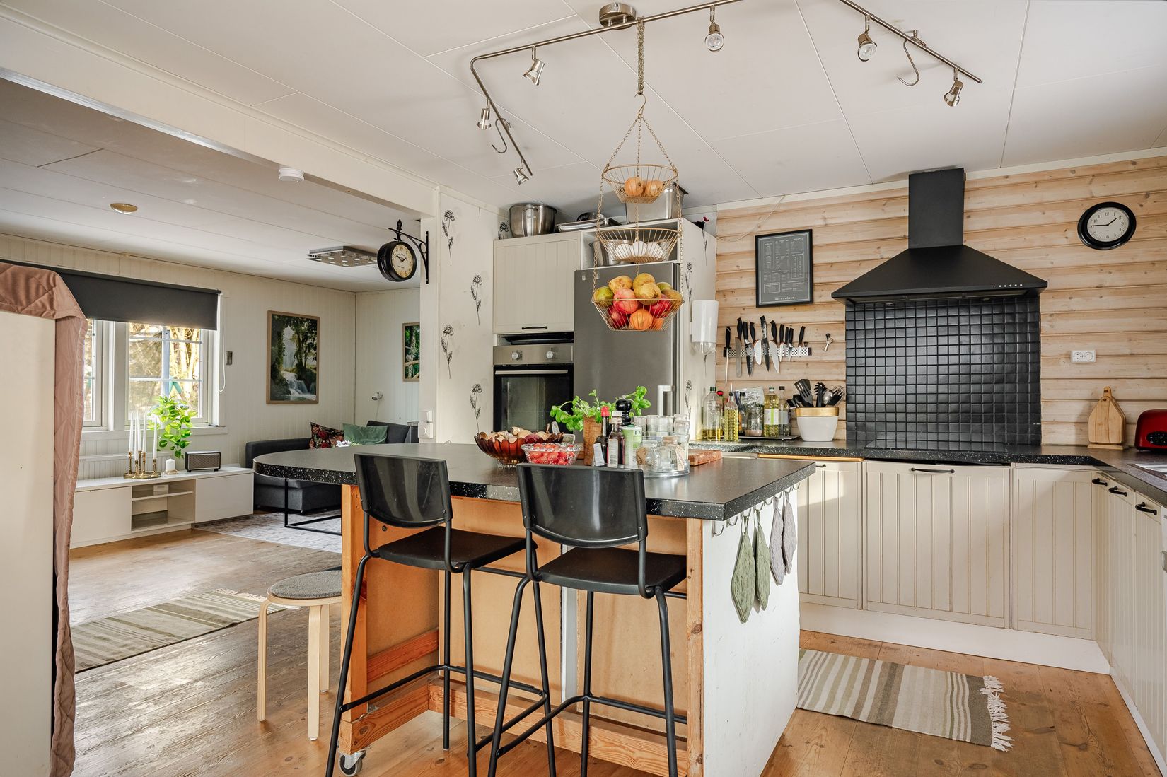 Trivsamt hus med visst renoveringsbehov. Kommunalt V/A ! Fin öppenplanslösning, delvis öppet till nock, kök med köksö, matrum och vardagsrum med braskamin. 2 sovrum. Ett badrum med renoveringsbehov samt en separat wc. Inredd vind med ett sovrum och ett allrum/ytterligare ett sovrum. Stor altan i söder/väster. Plats för flertalet bilar. Oinrett uthus om ca 50 kvm att inreda efter eget behov, tycke och smak. Tomten gränsar i bakkant till natur och skog och promenadavstånd till havet. Populärt område med närhet till busshpl och påfart till 73:an.
