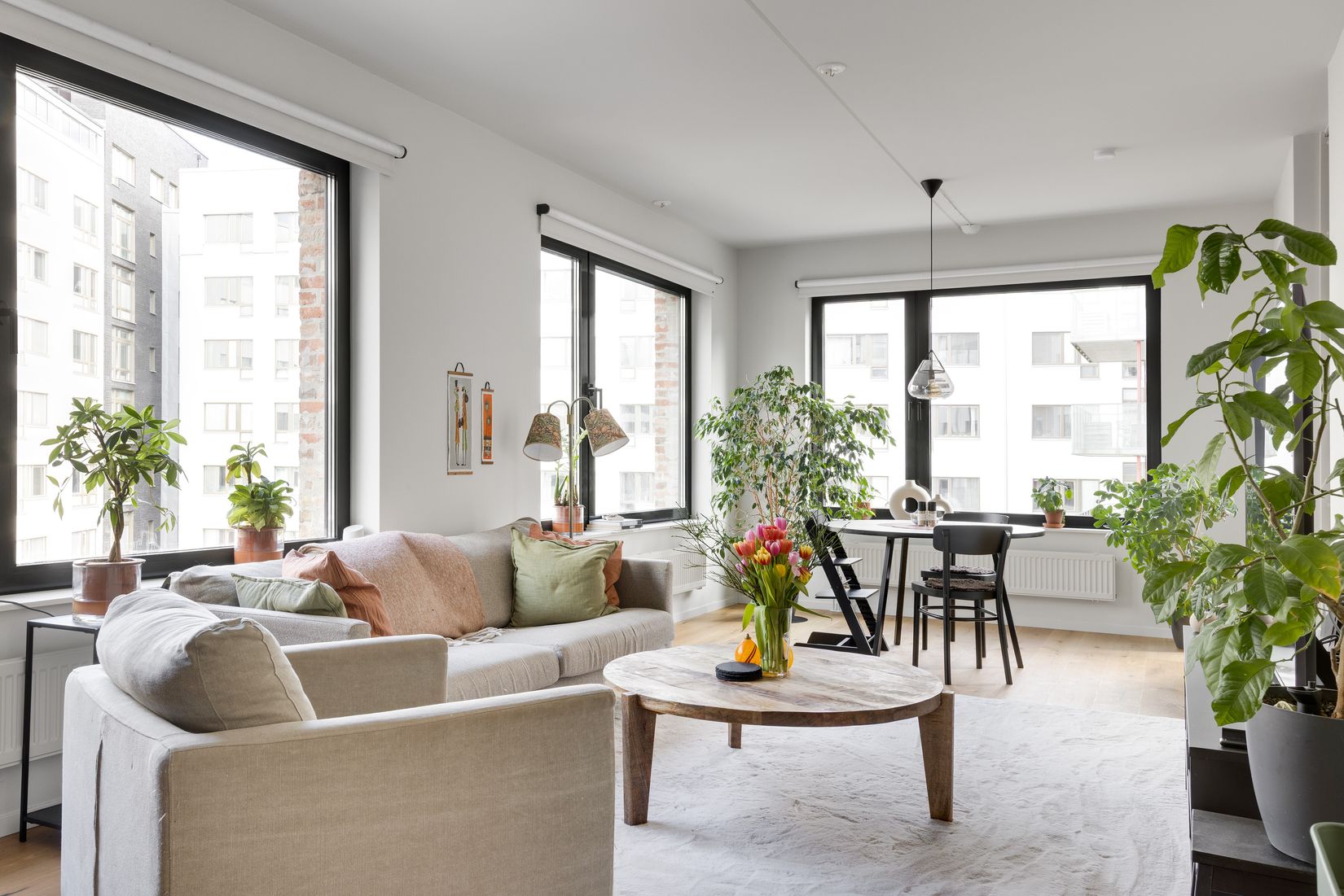 Modern fyra i Brf Blocks karaktäristiska byggnader där design och kvalitet legat i fokus vid skapandet. Lägenheten ligger på tredje våningen och erbjuder en generös takhöjd om 2,7 m samt fönster i tre väderstreck. De 94 kvm har genomgående vacker enstavig ekparkett och material- samt färgval som följer en enhetlig, stilfull linje. Planlösningen erbjuder hall i vinkel, modernt kök med grå luckor och arbetsytor i snyggt samt praktiskt kompositmaterial, vardagsrum med härligt ljusinsläpp, mycket tilltalande formgivet badrum med tvättdel, tre sovrum varav det ena med utgång till balkong.