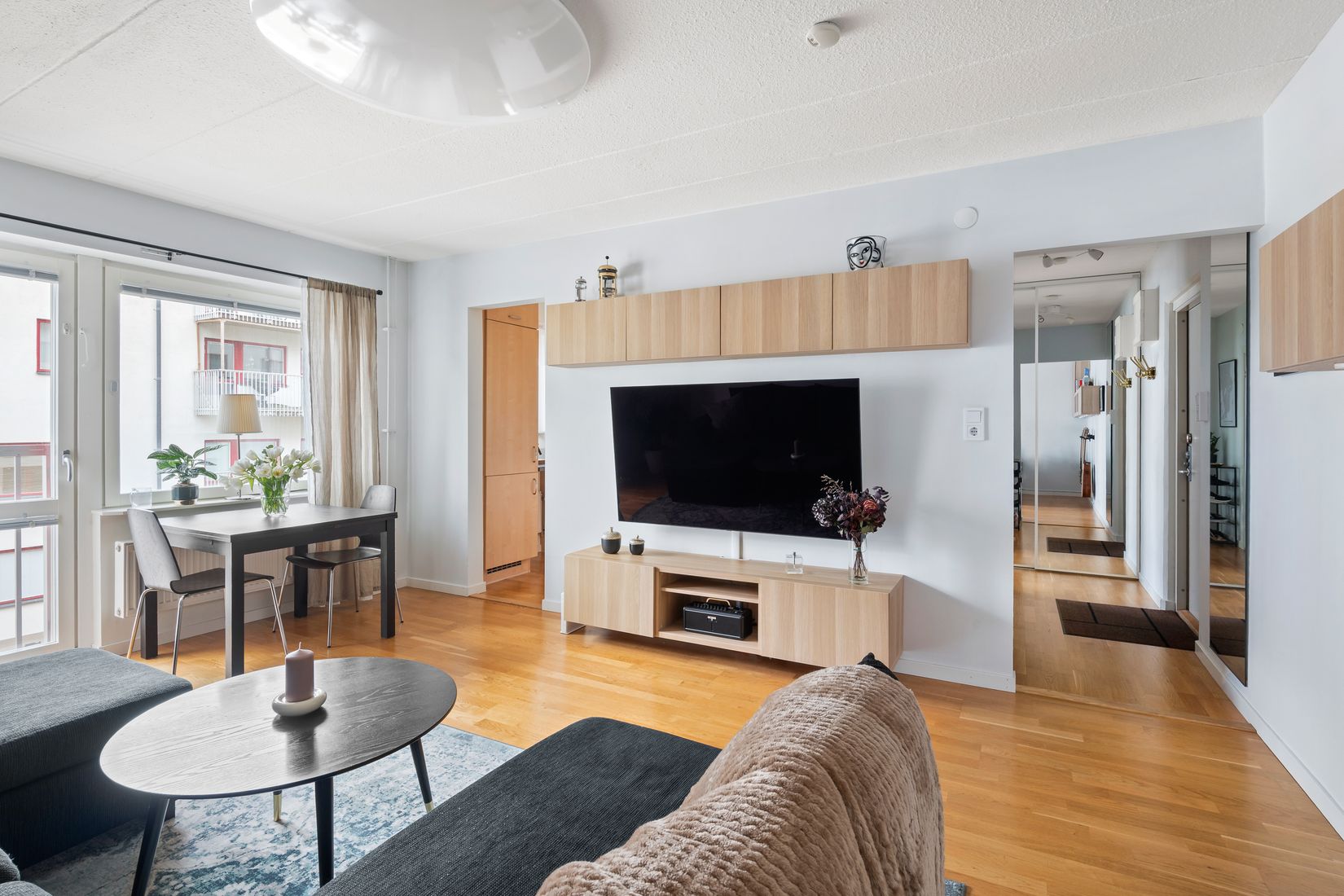 Trivsamt ljus och mycket funktionell 2:a med trevligt läge på återvändsgata. Bra förvaringsutrymmen i lägenheten samt separat förråd i källaren. Genomgående fint skick ger en god boendestandard.