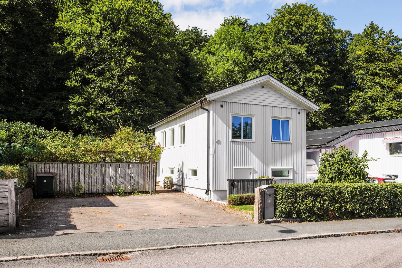 Granne med skogen ligger denna trivsamma villa med en totalyta om 122 kvm, omgärdad av grönska. Huset har 2-4 sovrum, stora fönsterpartier, rymligt kök och generöst vardagsrum. Det stora vardagsrummet har plats för både soffgrupp samt matsalsbord och i ena hörnet finns en braskamin för värme och mysfaktor. 30-talscharm med vackra brädgolv, tidsenliga handtag och fönsterbänkar i sten.